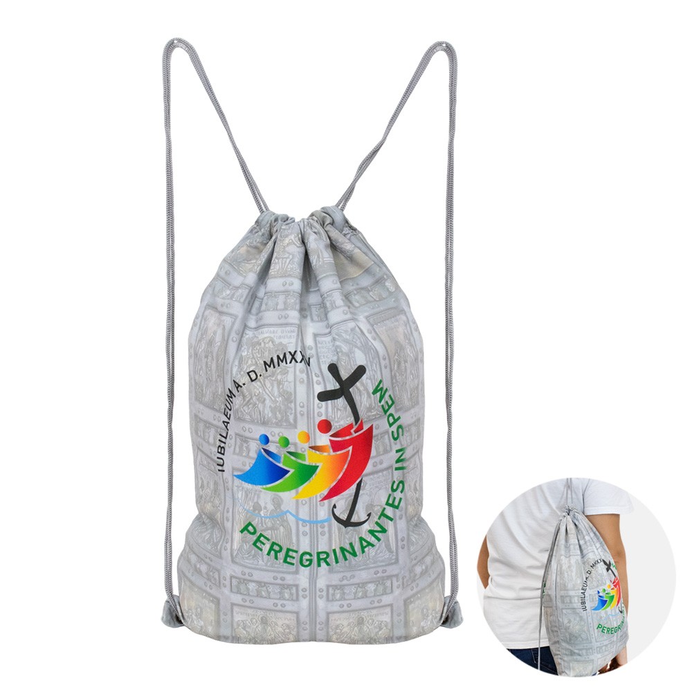Made from polyester fabric, featuring a print of St. Peter’s Gate and the official Jubilee 2025 logo.