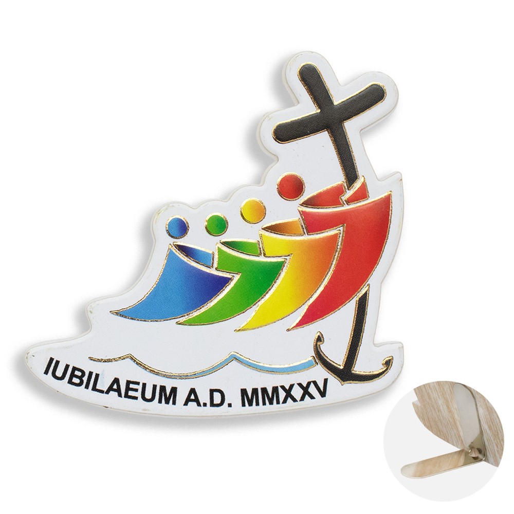 This magnet is made of polymer with a white background and full-color print, featuring the official logo of the JUBILEE 2025.