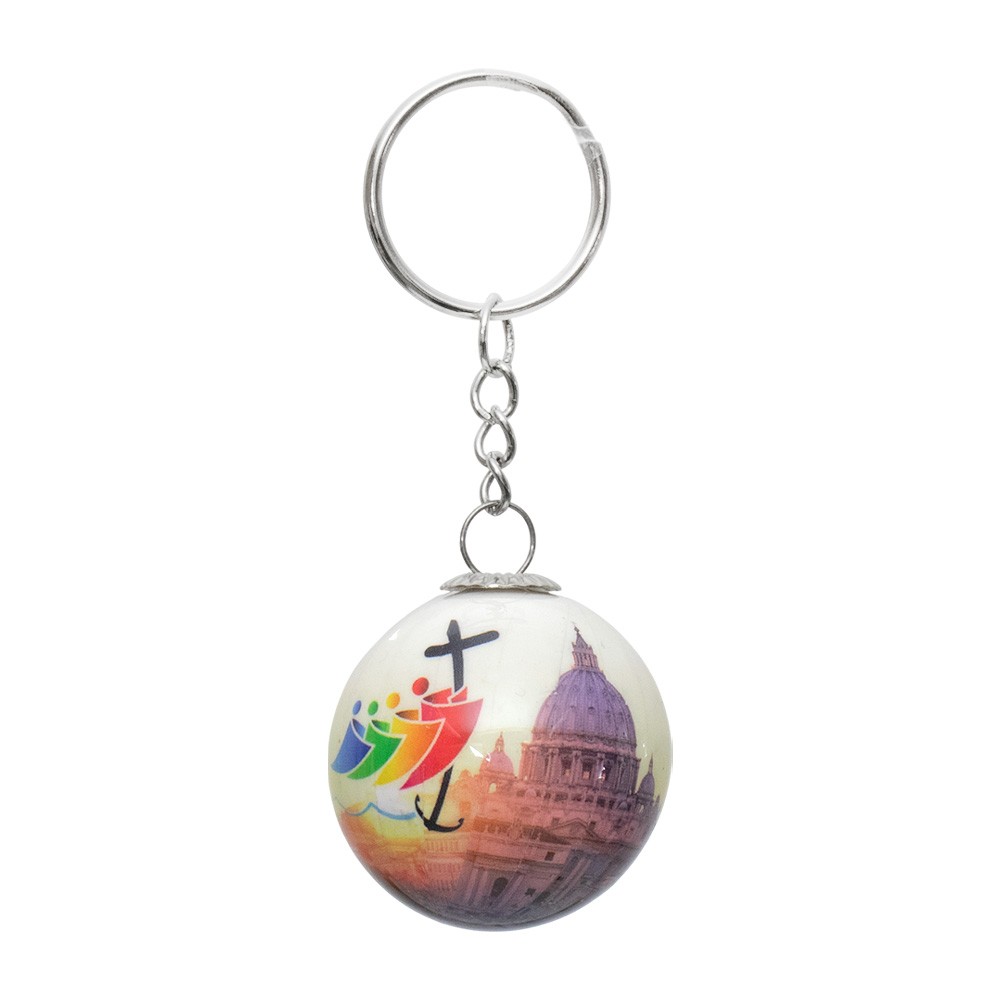 Round metal and polymer keychain featuring the image of Jubilee 2025 – Pilgrims of Hope.