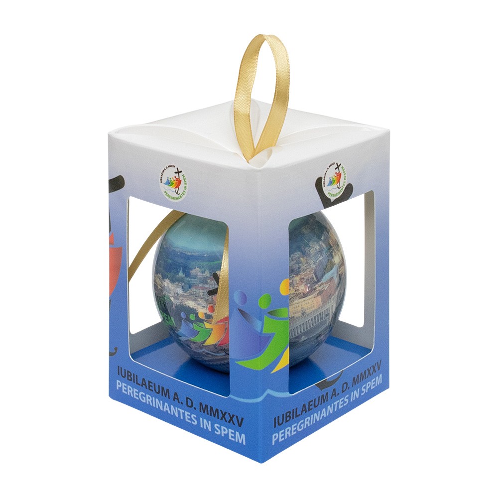 This lovely Christmas ball is decorated with the image and logo of the Jubilee 2025, making it a perfect keepsake to celebrate this event and enhance your Christmas tree.