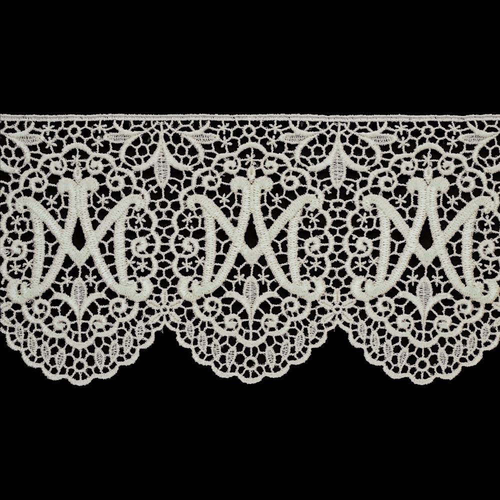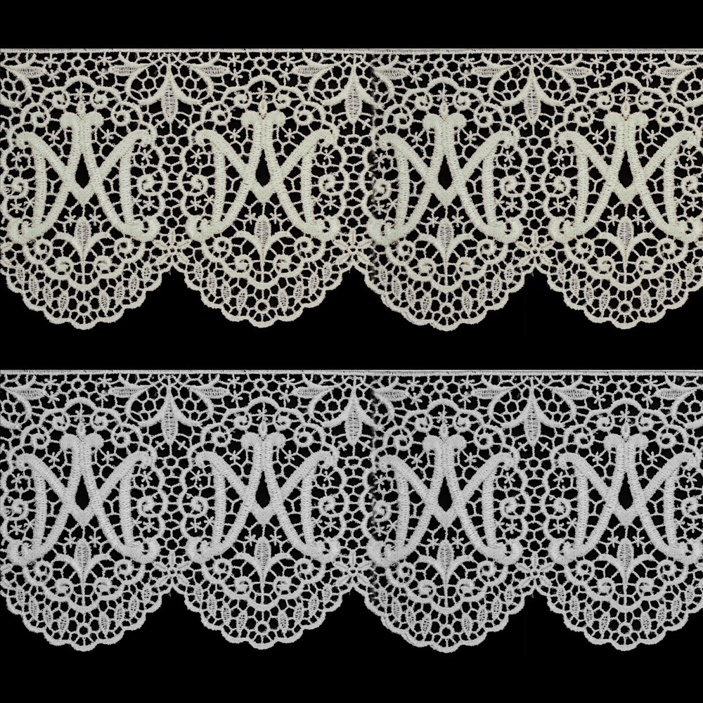 Lace band for altar cloth in viscose and polyester fabric with Marial embroidery.