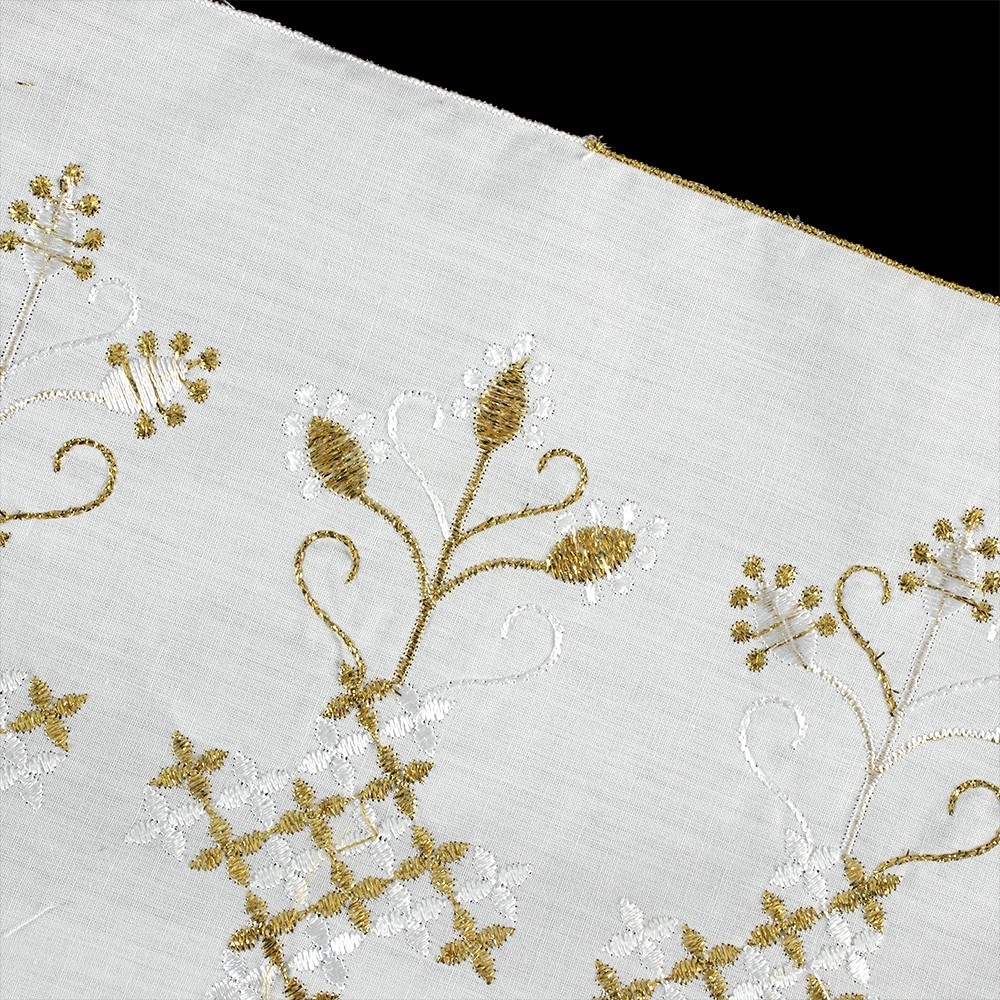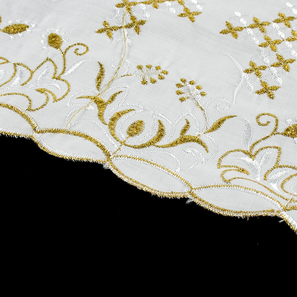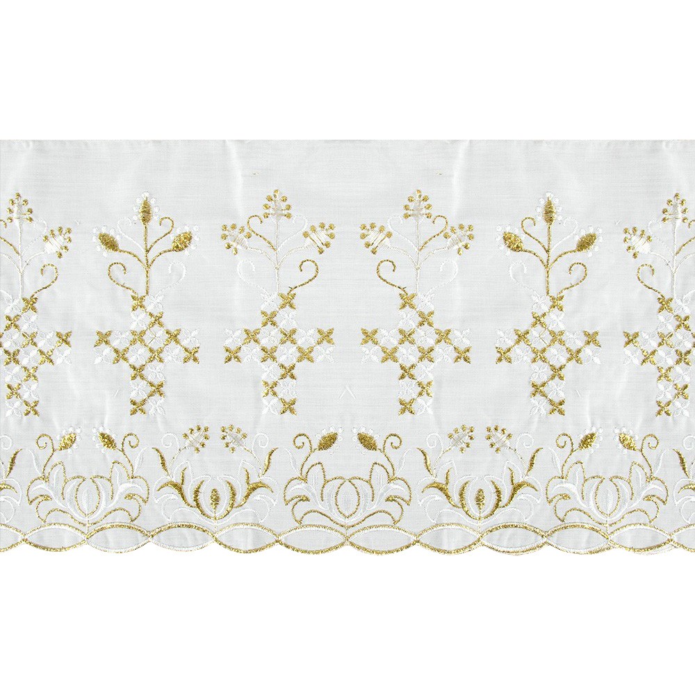 Border trim with embroidery for altar cloth. The embroidery is made by machine using gold and white threads. Made in Italy.
