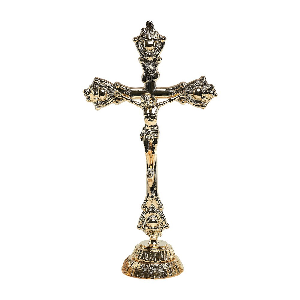 Table crucifix in gold-plated brass, h 30 cm.