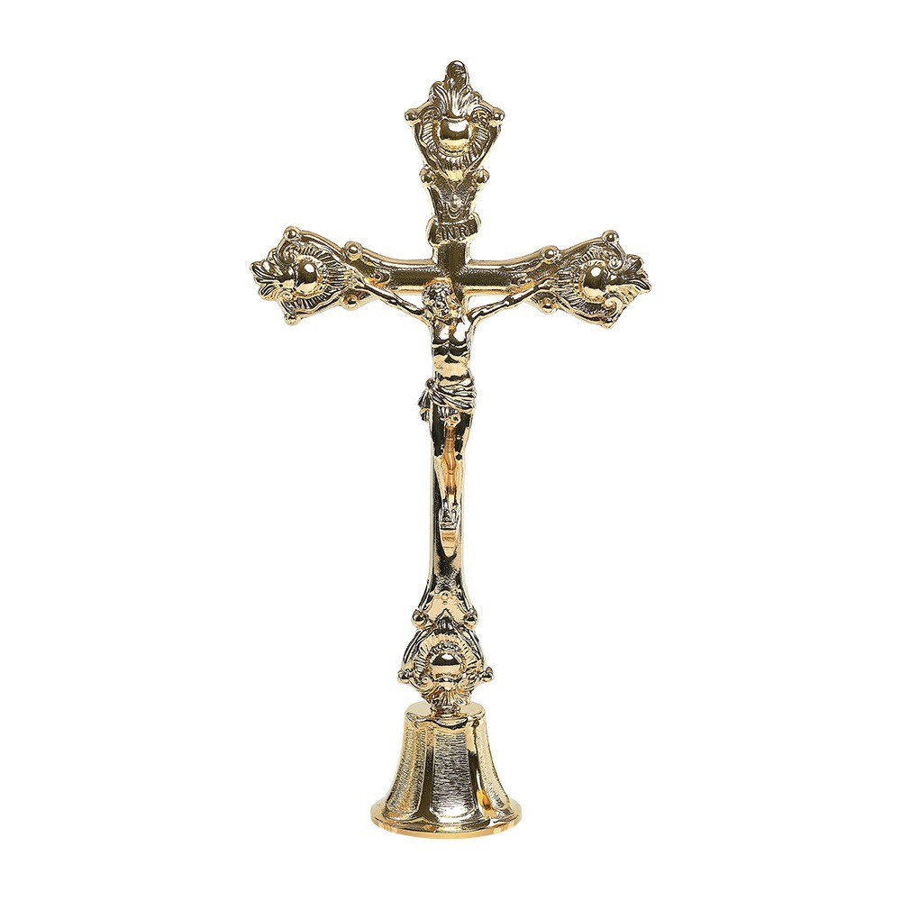 Altar crucifix in 24k golden brass, h 30.5 cm.