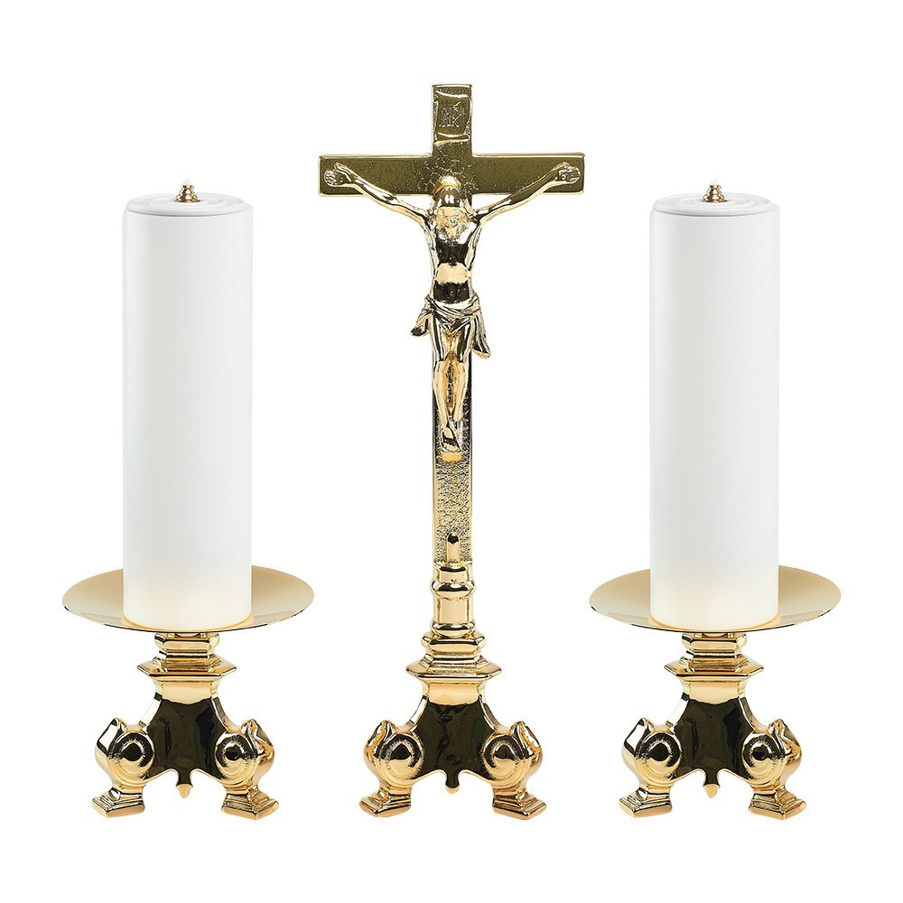 Shipping in 2 weeksAltar cross with pair of candle holders.