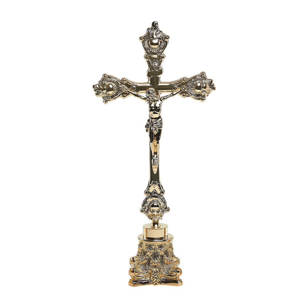 Altar crucifix in 24k golden brass, h 30.5 cm.