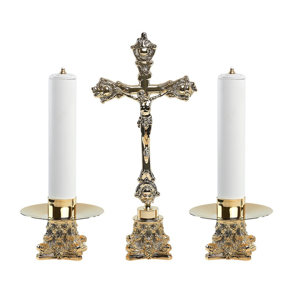 Altar cross with pair of candle holders.