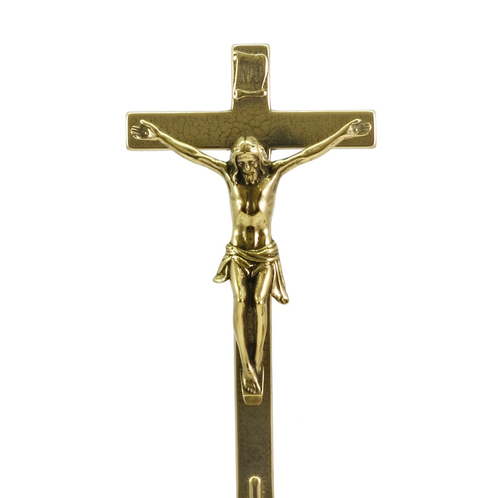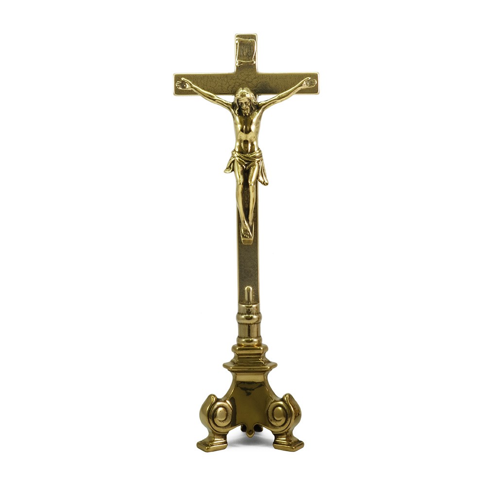 Altar crucifix in 24k golden brass, h 30.5 cm.