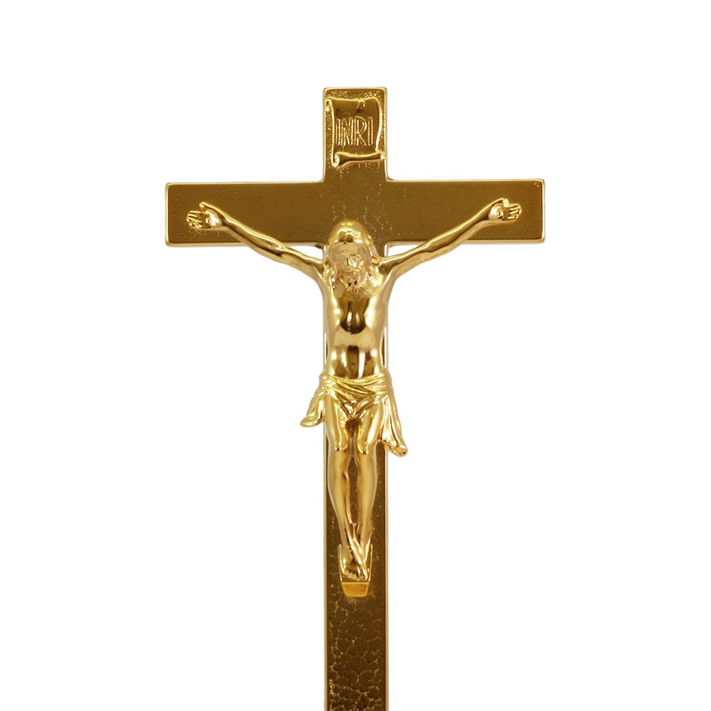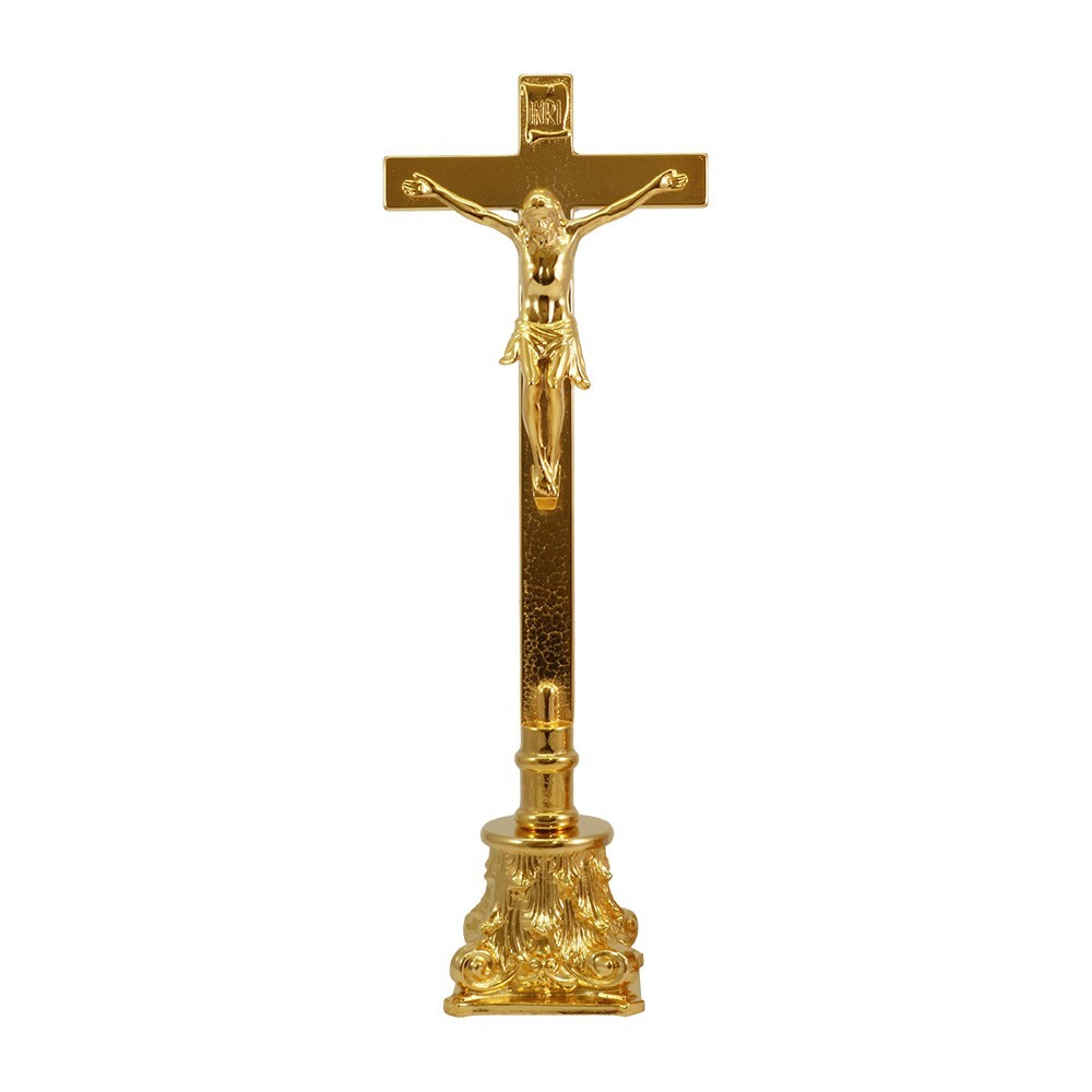 Altar cross made of 24k golden brass, h 40.5 cm.