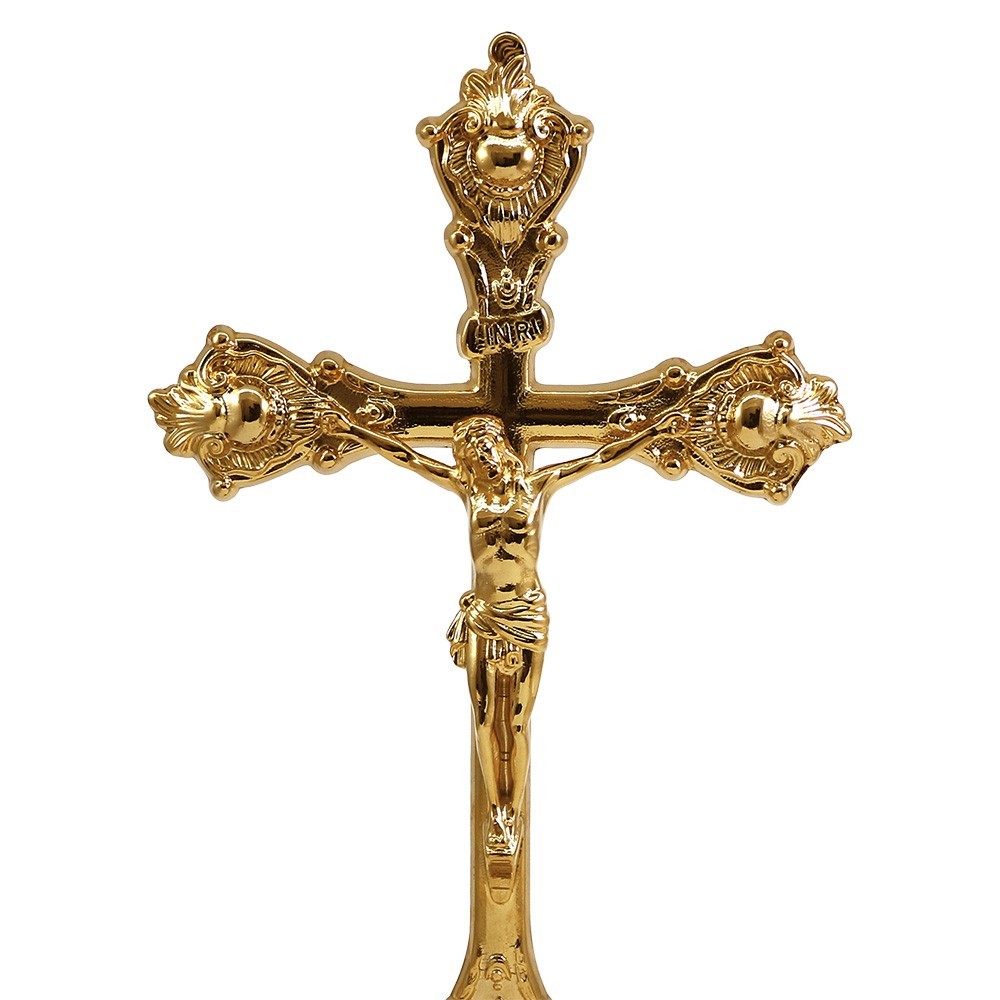 Altar cross made of 24k golden brass, h 40.5 cm.