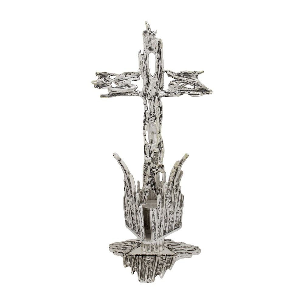Cross for candle holder, made of silver-plated brass, h 36 cm.