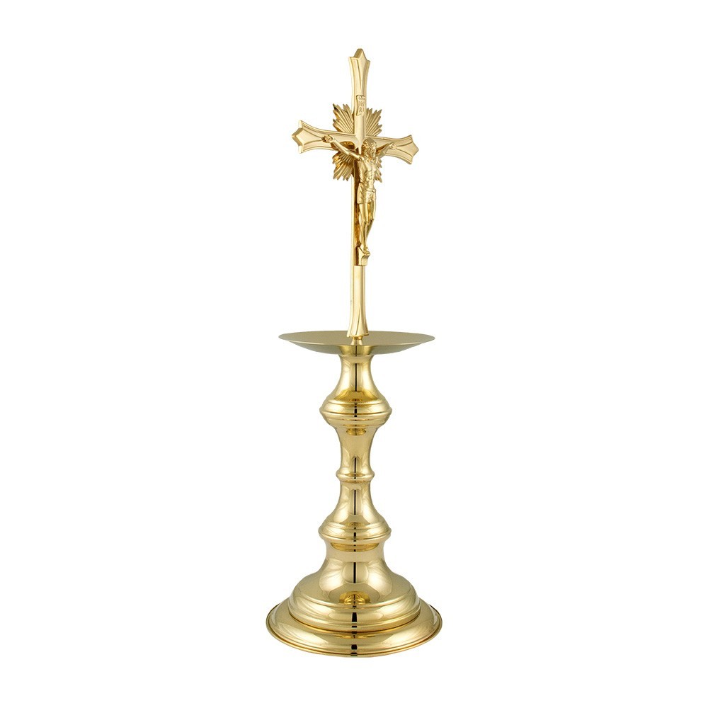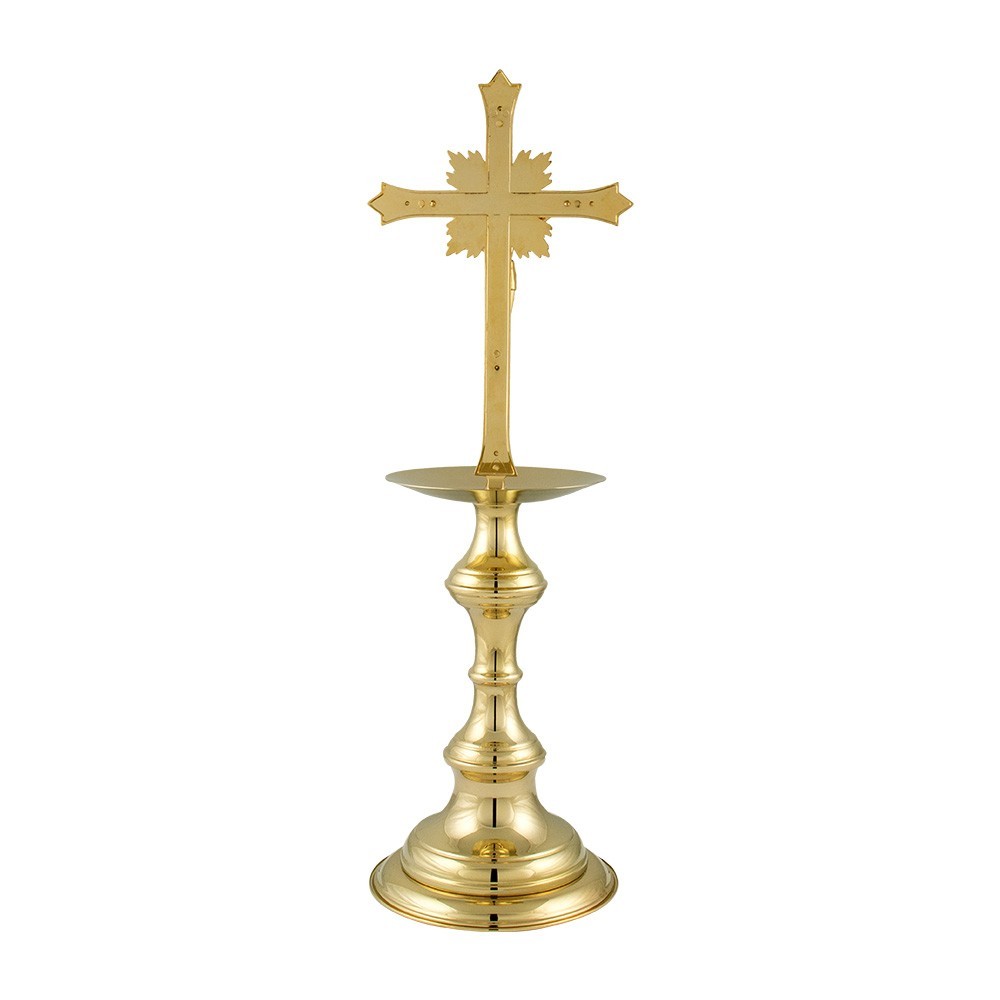 Shipping in 2 weeksAltar cross on brass candlestick, h 40 cm.