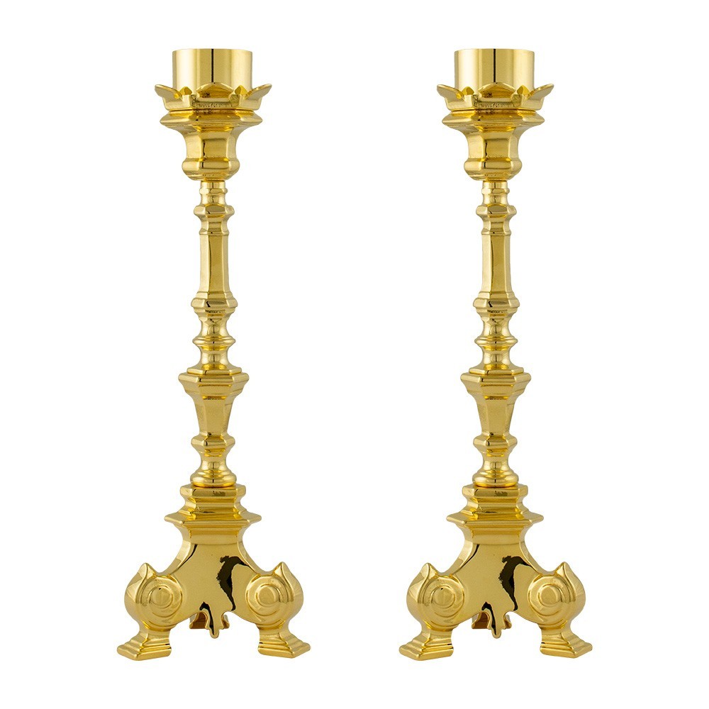 Shipping in 2 weeksPair of altar candlesticks in baroque style.