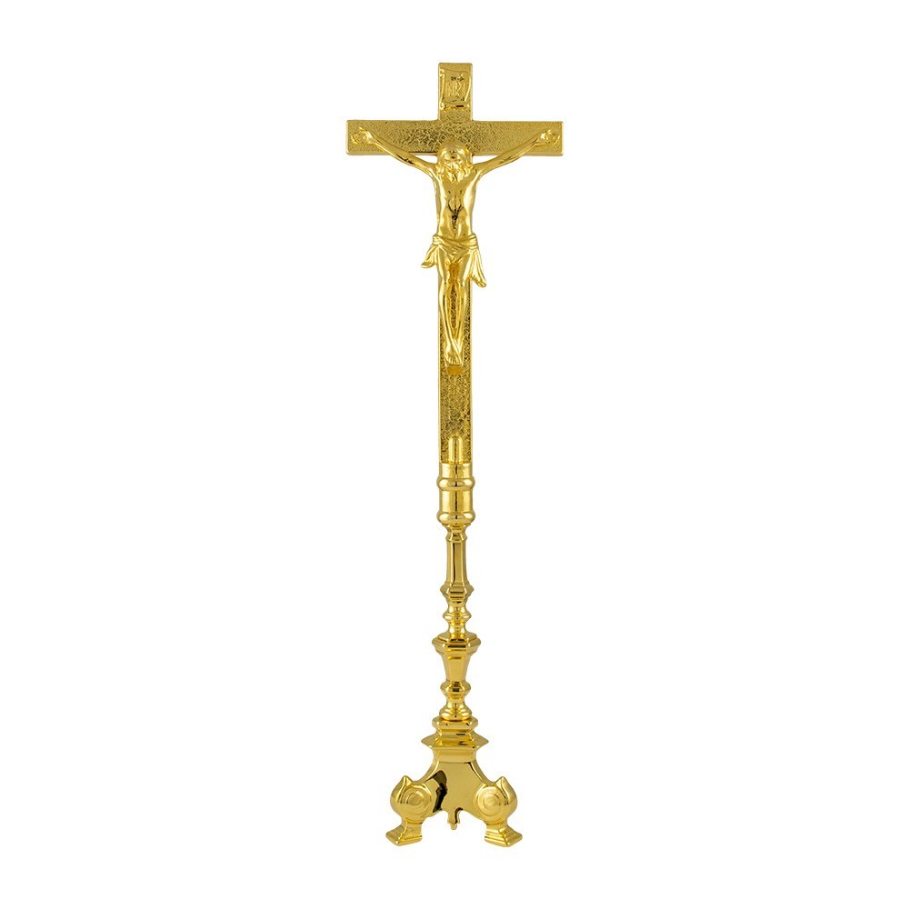 Guaranteed Shipping in 24-48 hAltar cross in golden brass with base, h 30 cm.