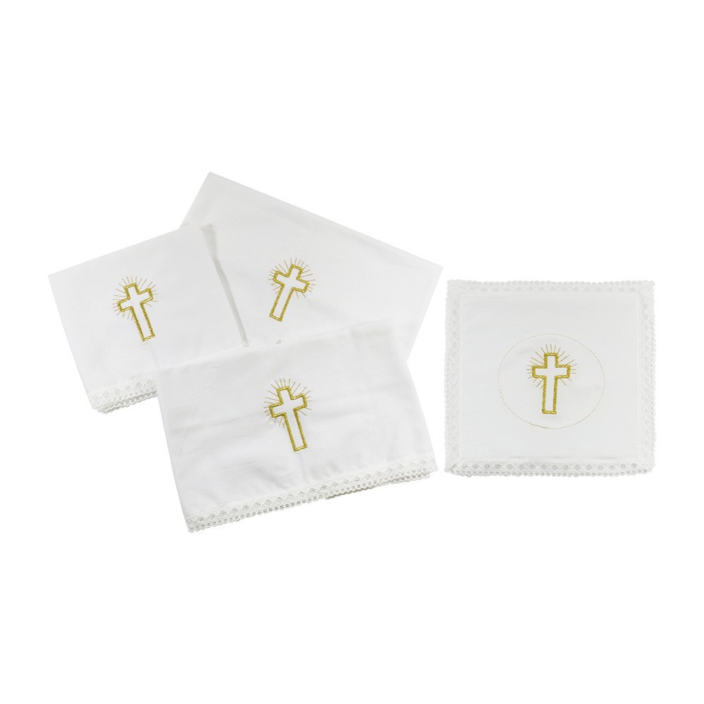 Mass linen set with golden cross embroidery. Made of pure cotton.