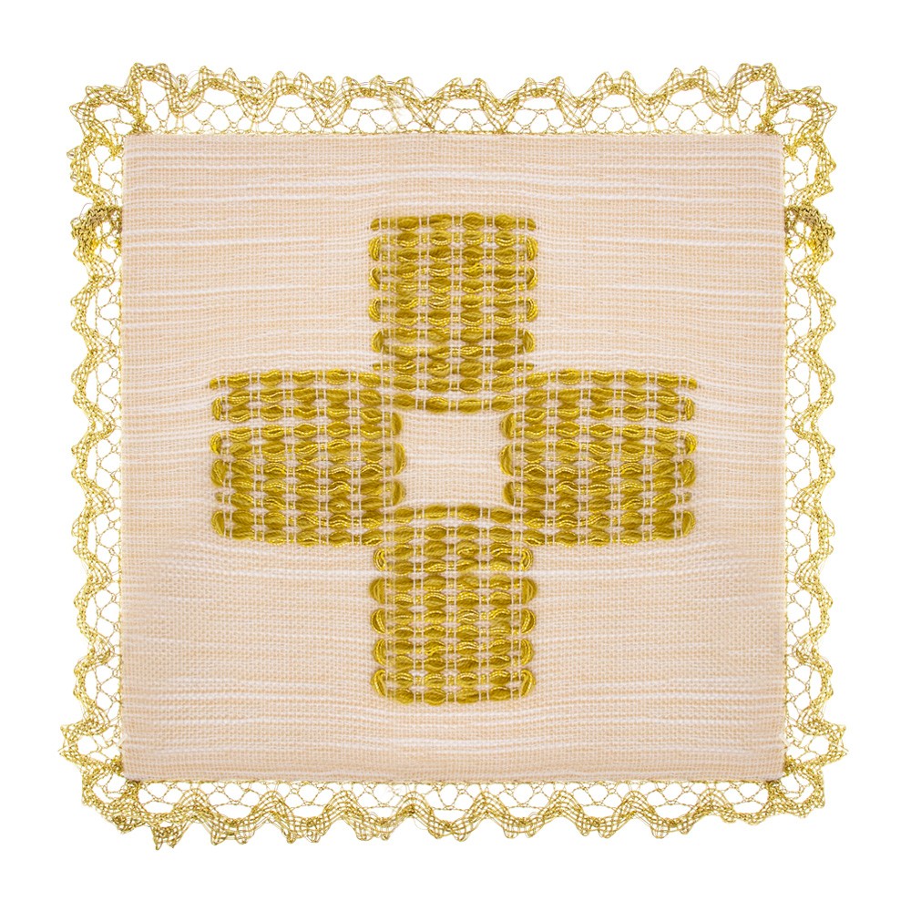 Liturgical chalice veil (pall), ivory and gold. Made of fine pure wool fabric with embroidered cross. The fine embroidery is entirely handmade following the ancient tradition.