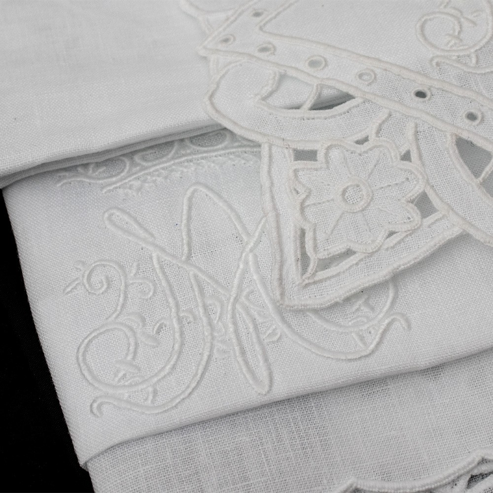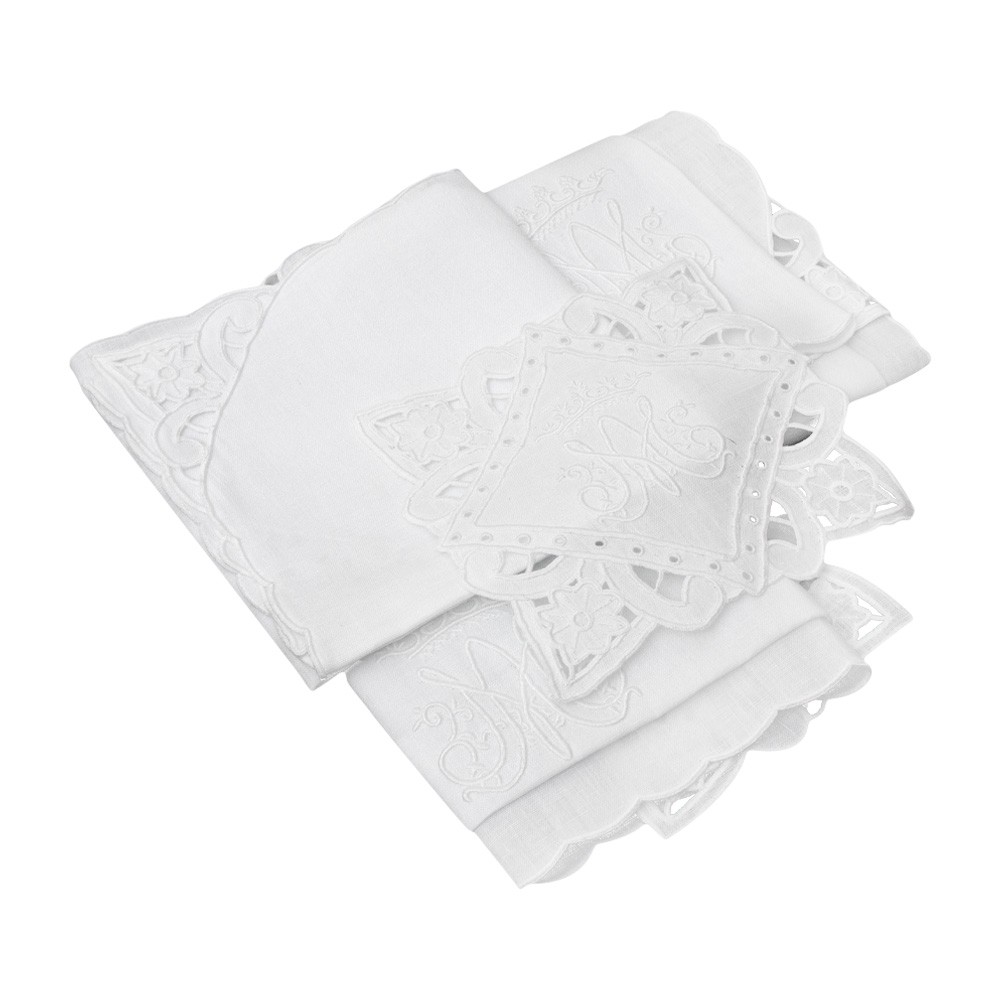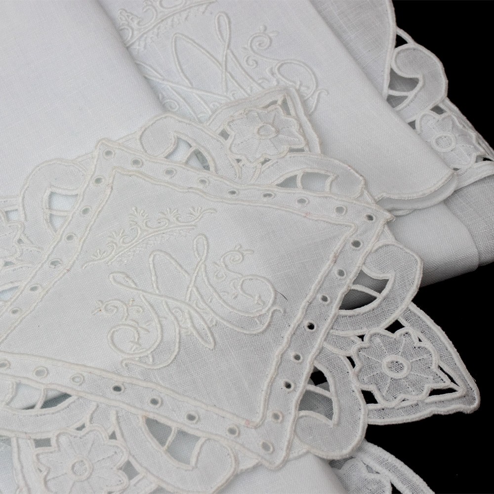 This set features a cut-out embroidery of the Marian monogram made by hand.