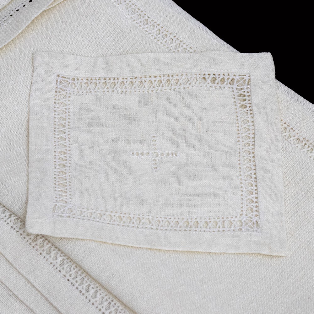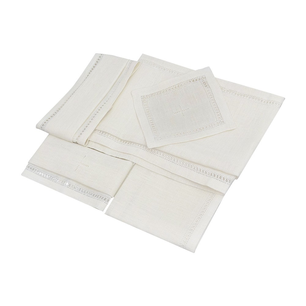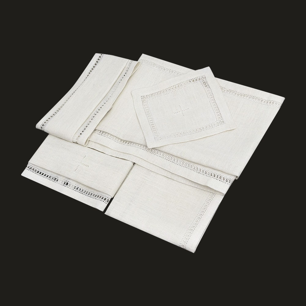 Consists of 4 pieces (corporal, purificator, lavabo towel, and chalice pall).
