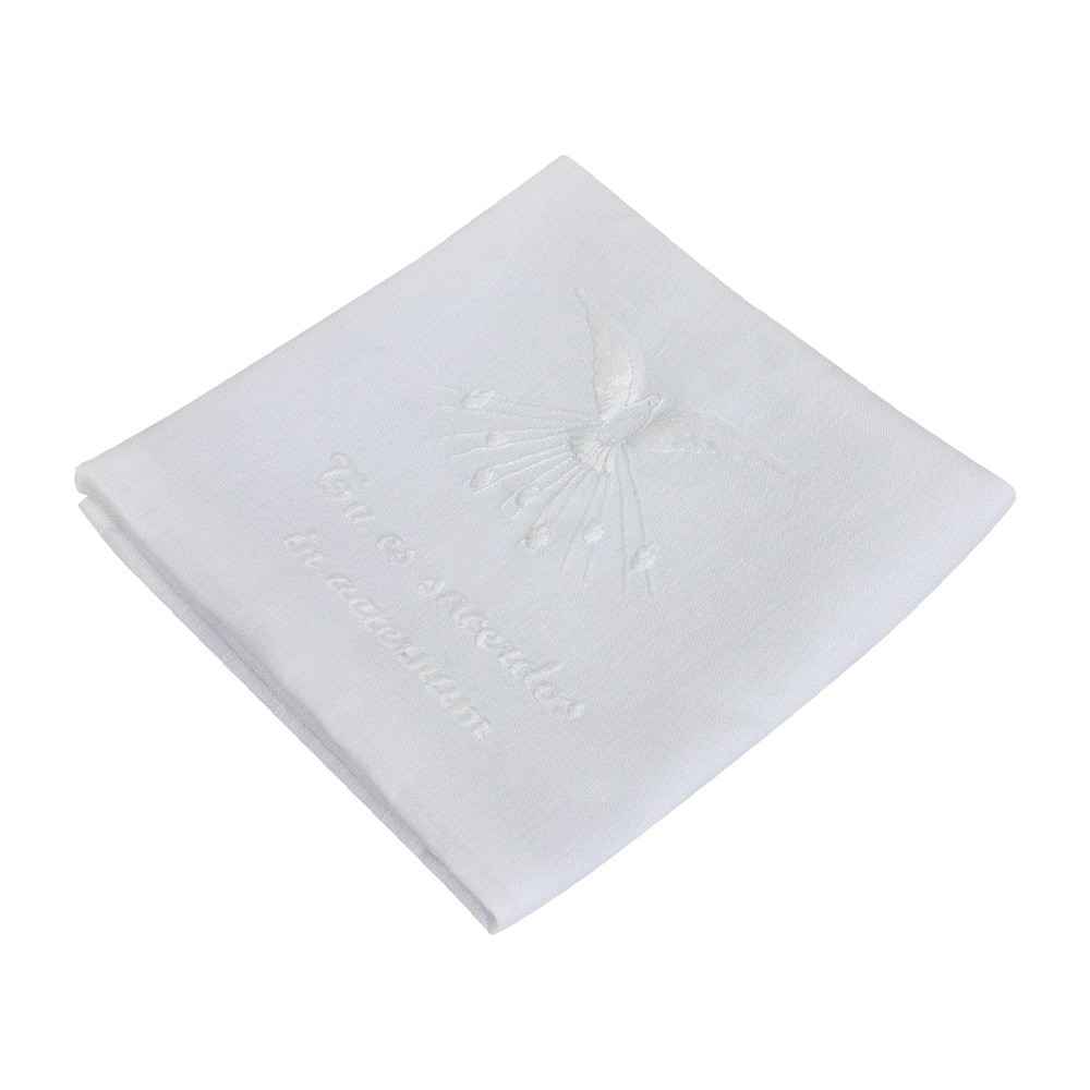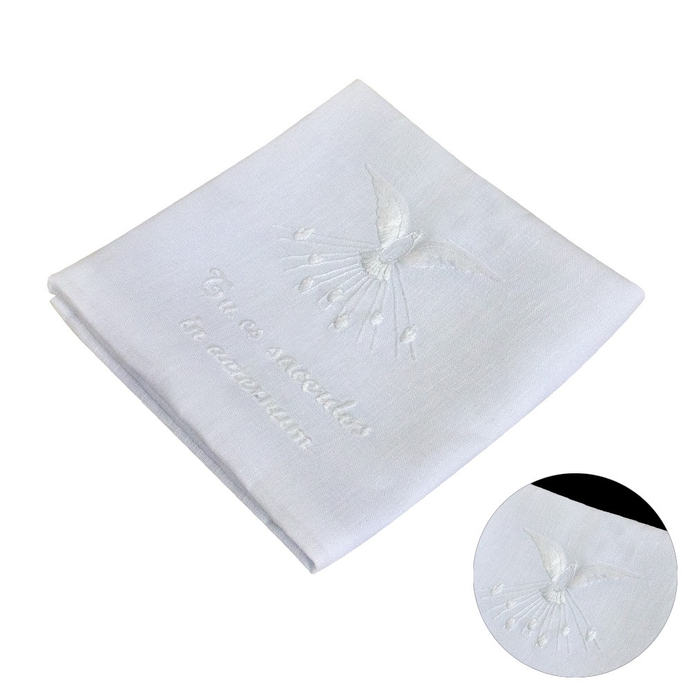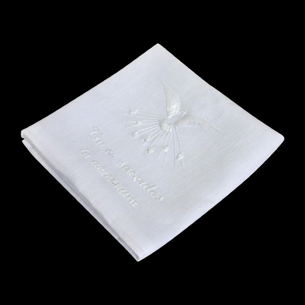 Chrism handkerchief made from 100% linen, meticulously hand-embroidered by skilled Italian artisans using traditional techniques.