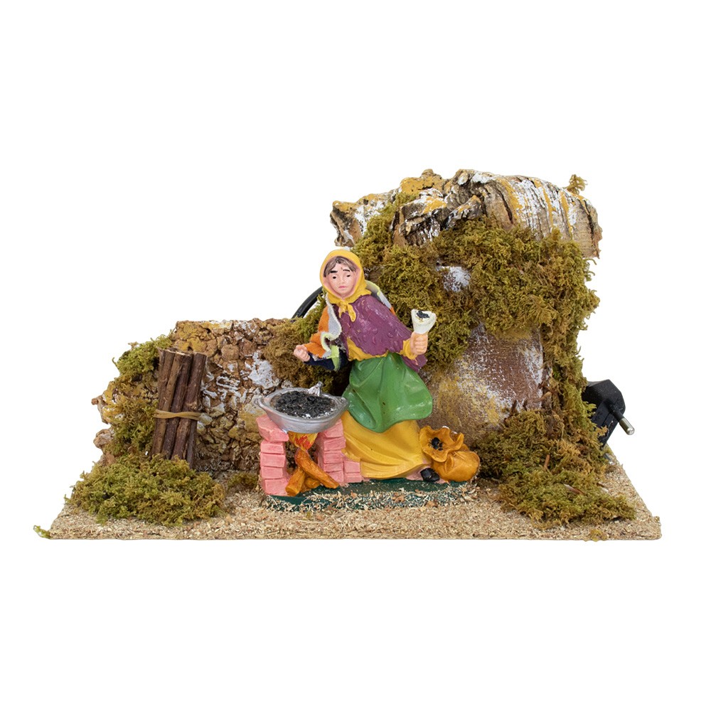 Chestnut seller for animated nativity scene, size 25x15x h 16 cm.
