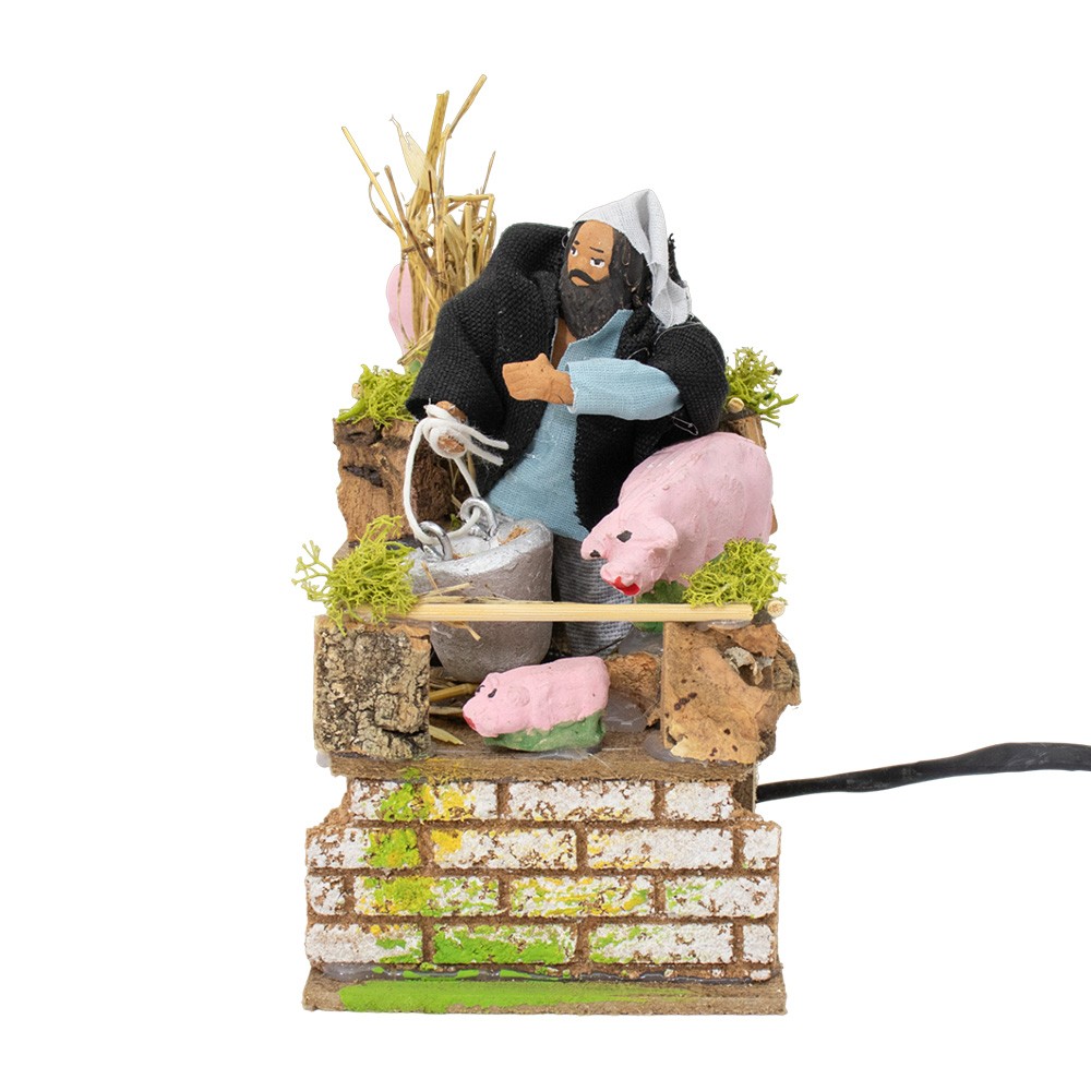 Animated figure: pig farmer for animated nativity scene, size 10x15x15 cm.