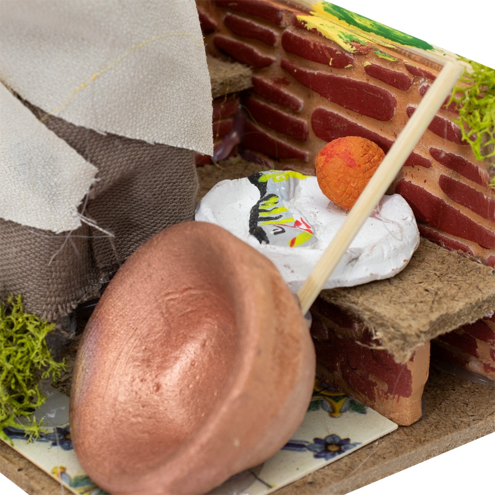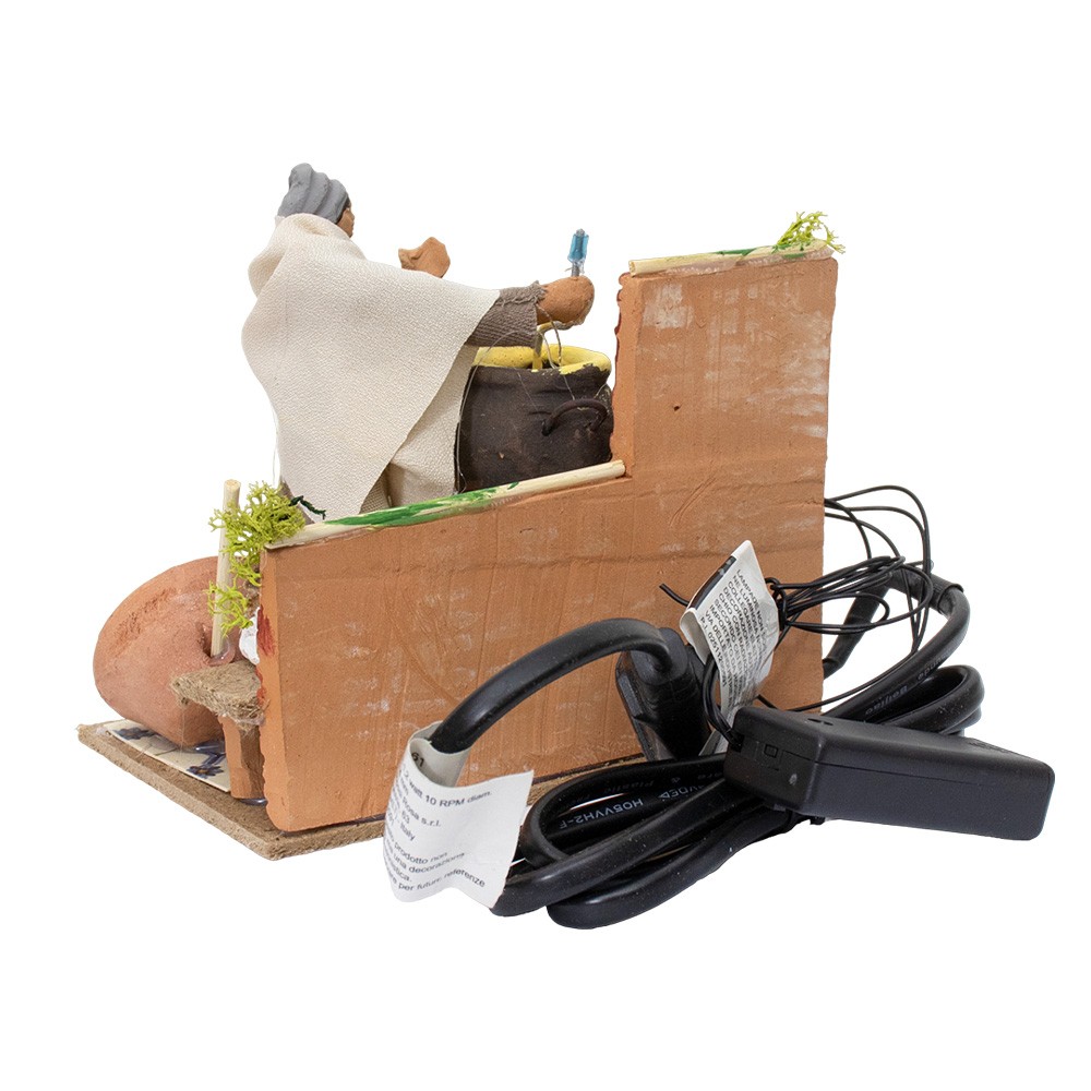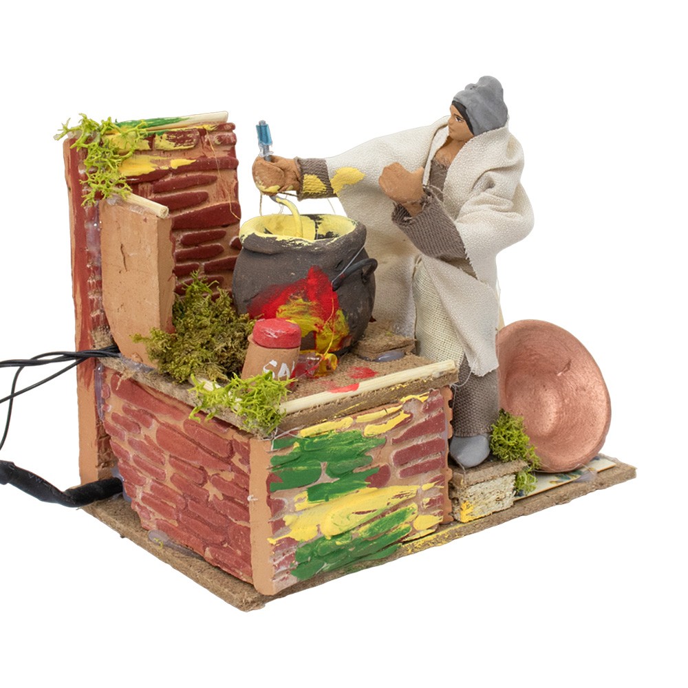 Woman making polenta with LED for animated nativity scene. Size 15x9x h 11 cm.