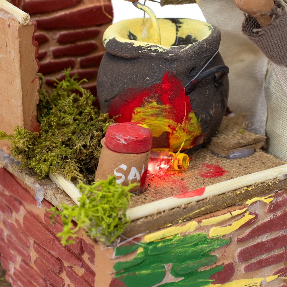 This setting represents a woman making polenta inside a large pot and is provided with two LEDs that require 1.5V AAA batteries (not included).