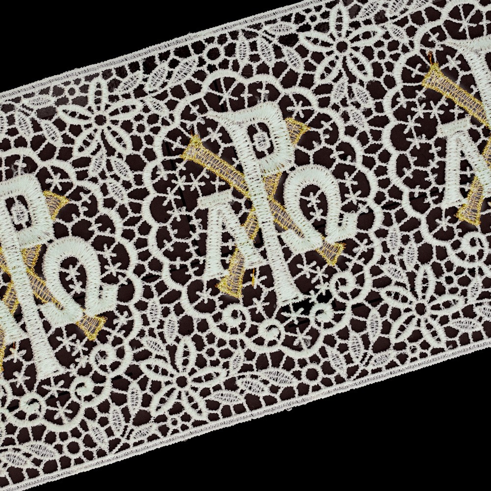 Lace band in viscose and polyester blend with Christogram embroidery.