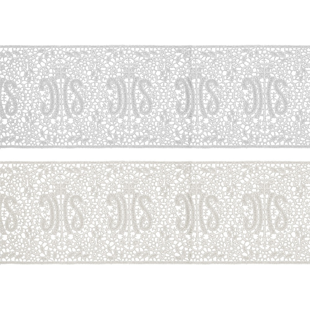 Decorative band with JHS embroidery for surplices, albs and liturgical vestments, h 12 cm.