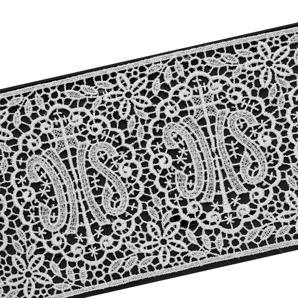White macramè lace band with crosses decoration. Height: 3 cm.