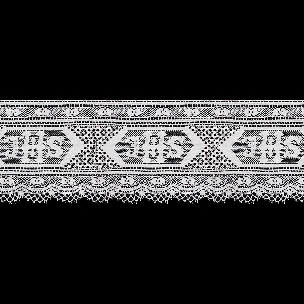 White macramè lace band with crosses decoration. Height: 3 cm.