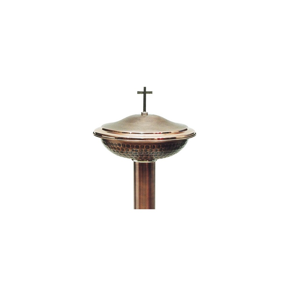 Entirely made of smooth satin brass. The basin is hammered and complete with lid, cross and removable aluminium inside.