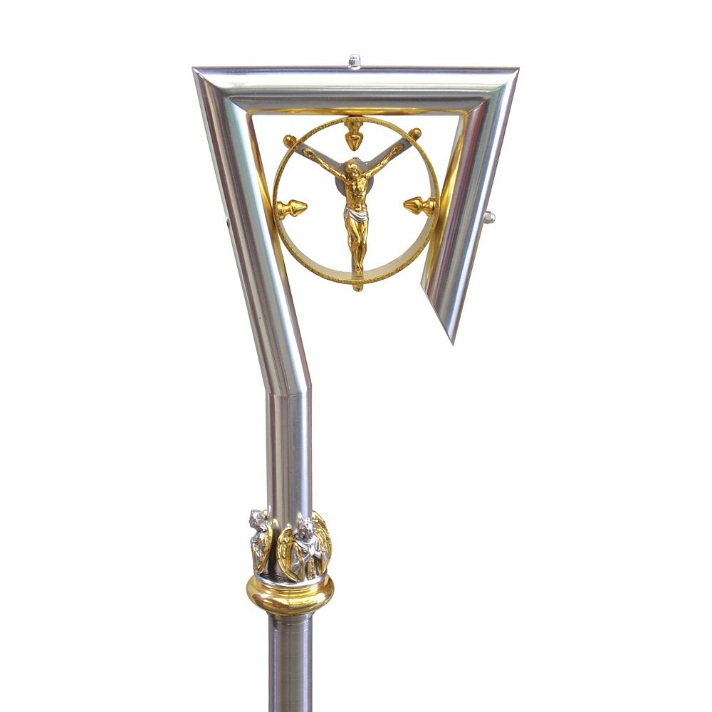 Pastoral staff in two-tone brass with central cross and praying angels at the base of the crozier. Excellent quality product made in Italy.