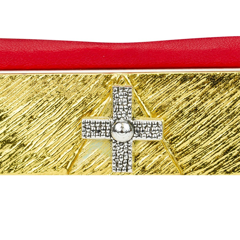 Finely decorated book stand made of two-tone brass and embellished by small silver crosses. The book stand has a size of 38x25 cm and is provided with a red cushion in fake leather.