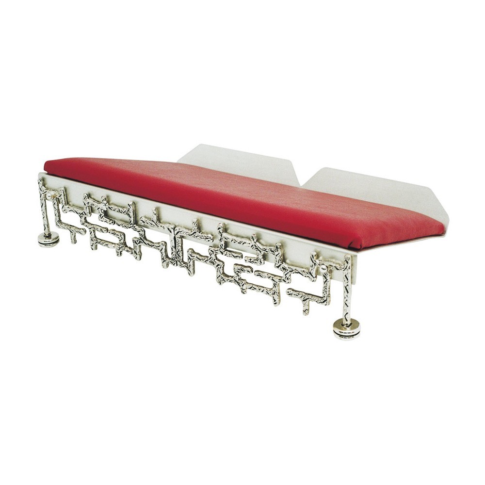 Book stand entirely made of silver-plated brass, decorated with openwork on the front. Provided with a red cushion in fake leather.