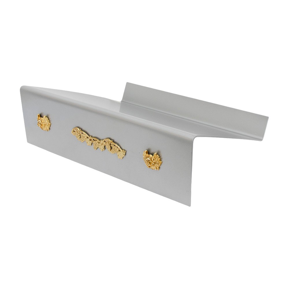 Book stand made of brass with silver finish and ornaments in golden metal.