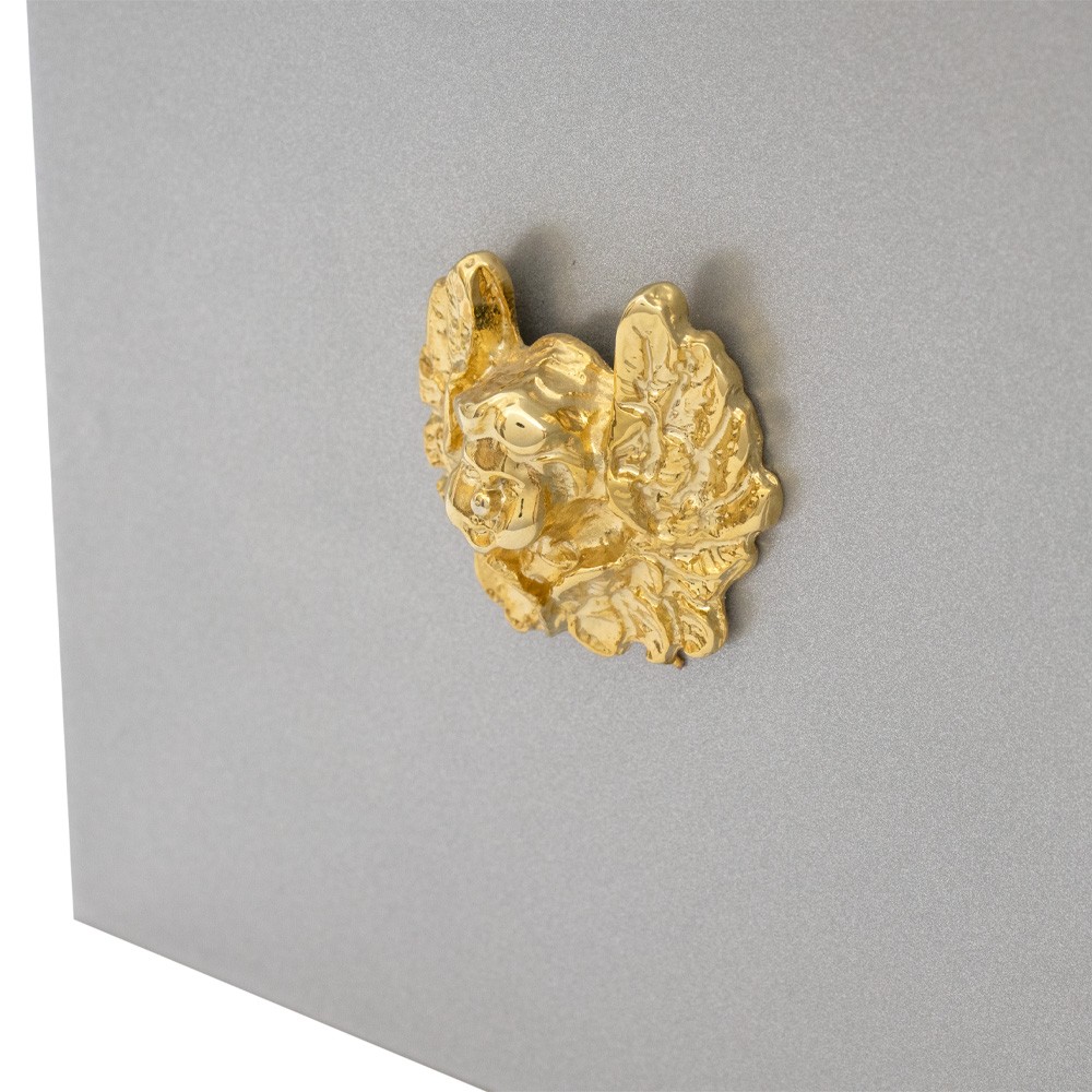 Elegant book stand entirely made of brass with silver finish and golden ornaments.