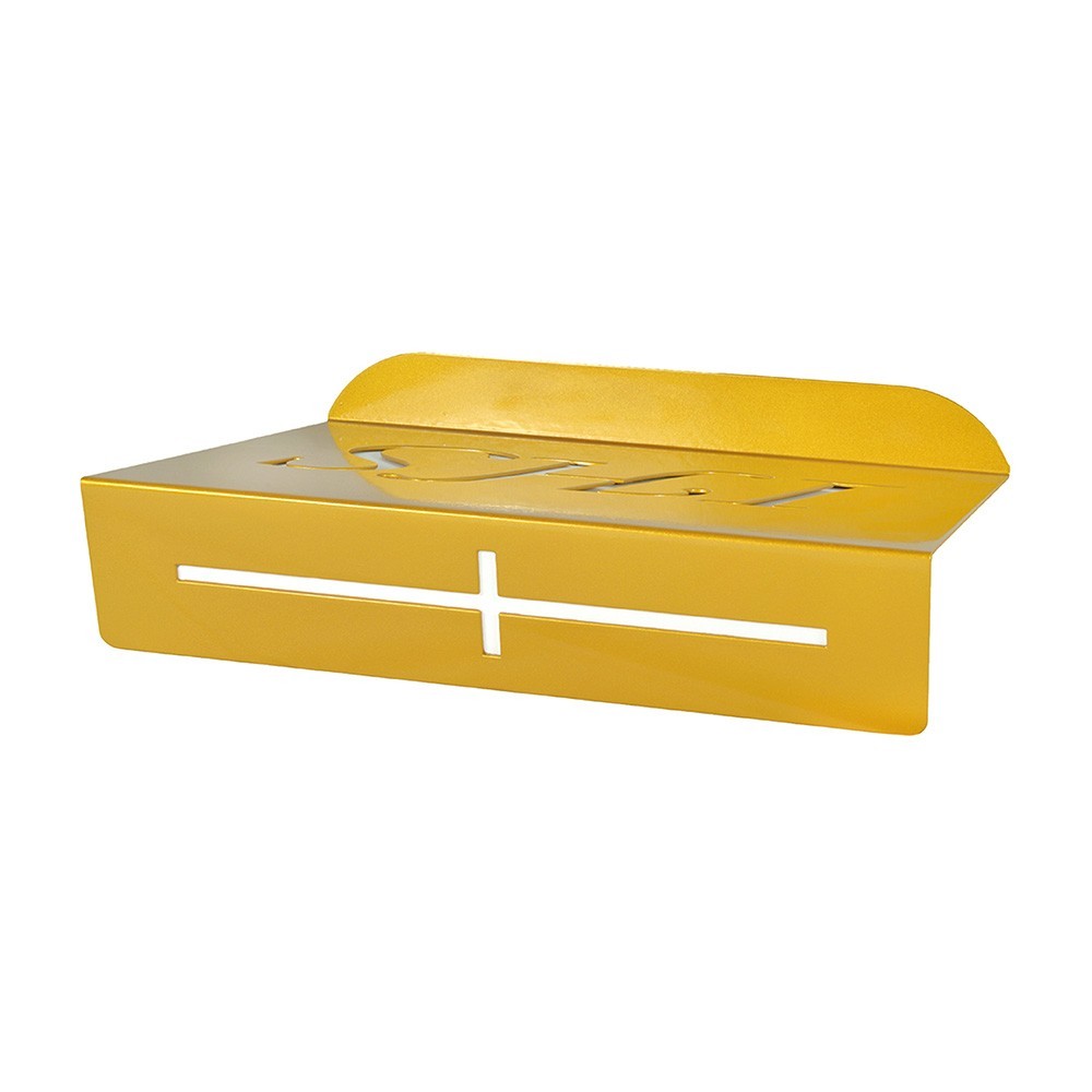 Book stand entirely made of gold-plated brass with laser decoration depicting a cross and the JHS symbol. It does not contain nickel. Made in Italy