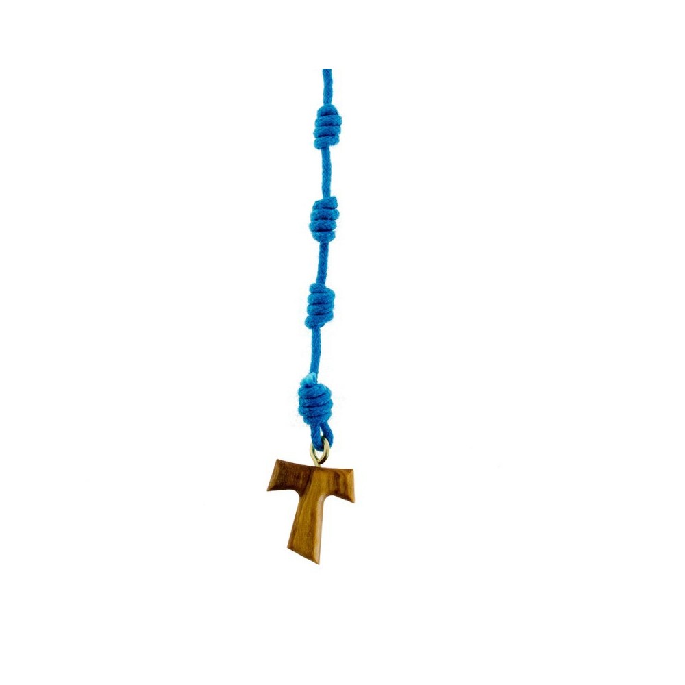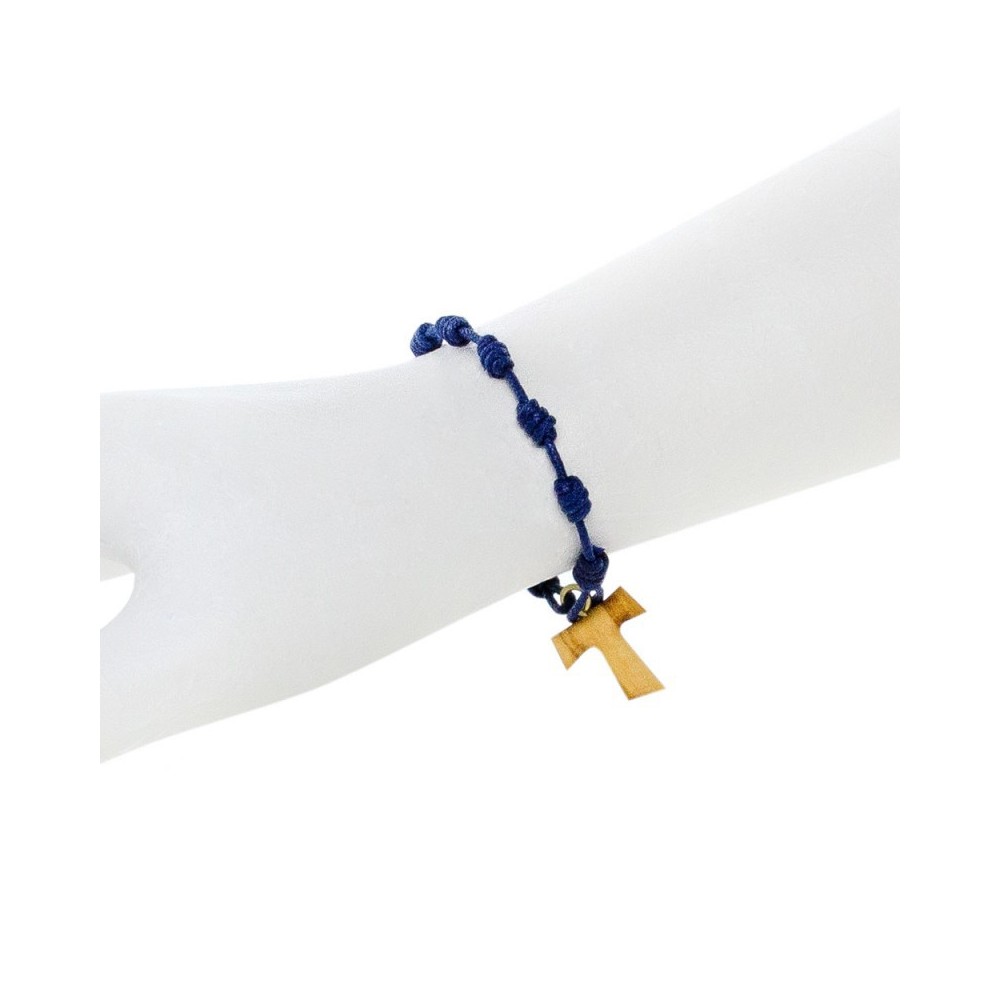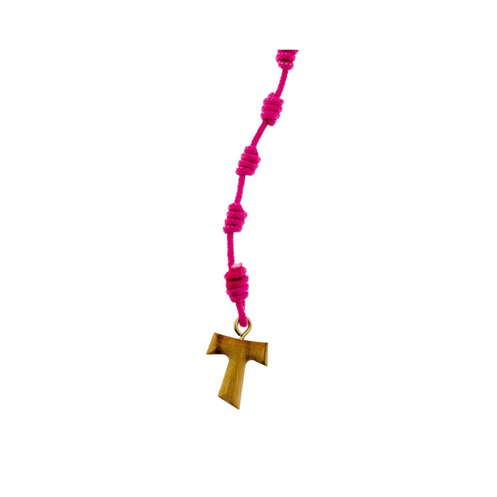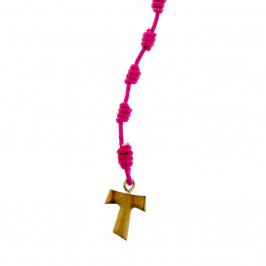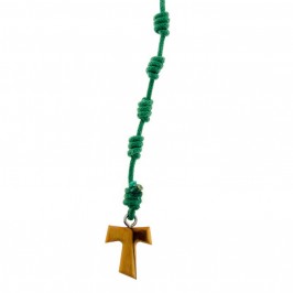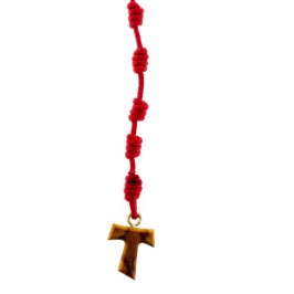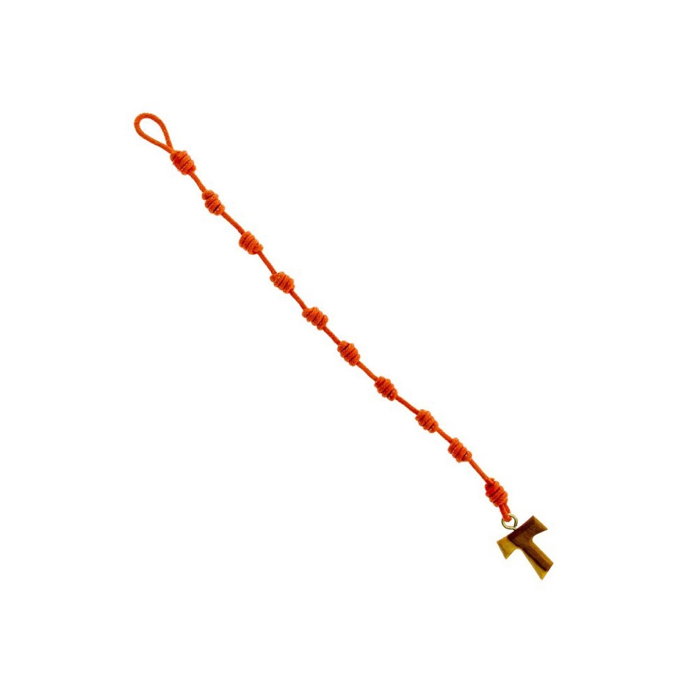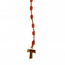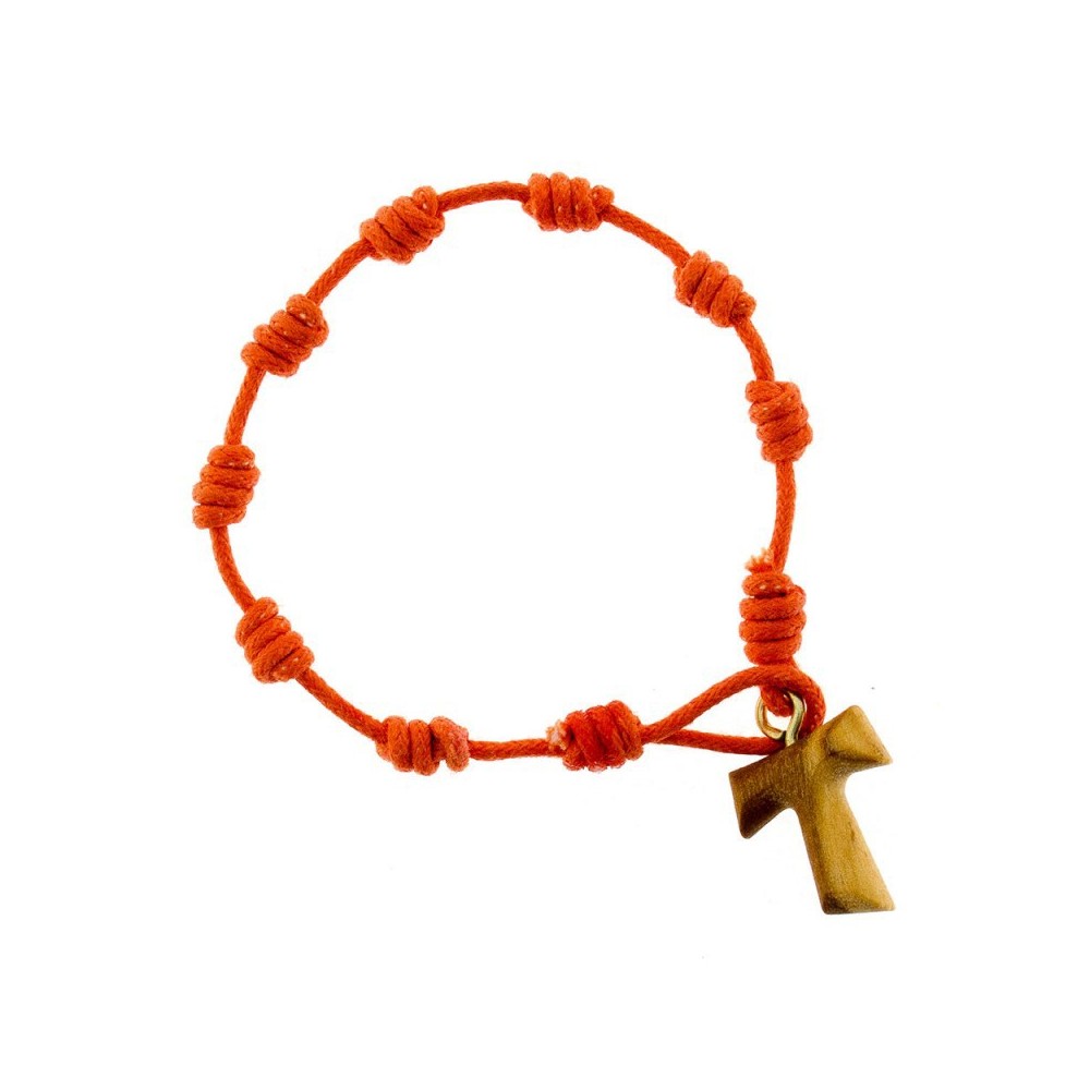 One decade rosary bracelet in rope of assorted colors and Tau Cross in olive wood.
