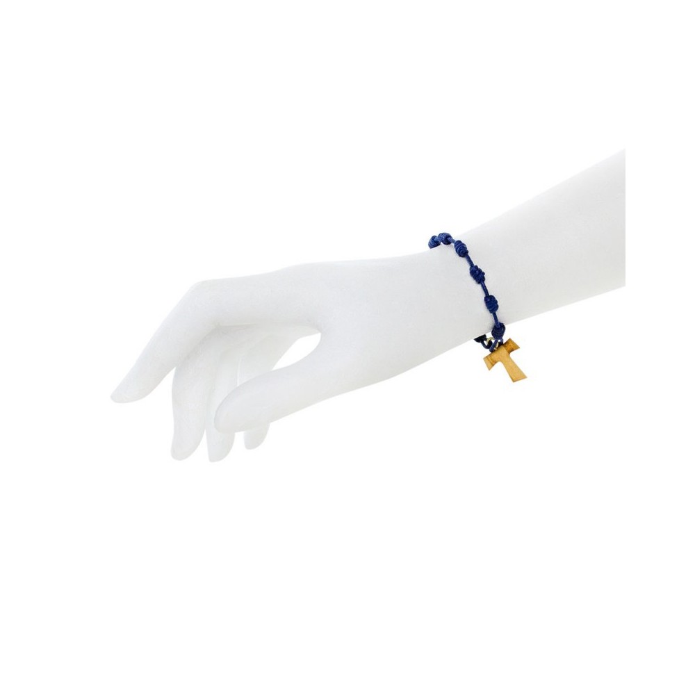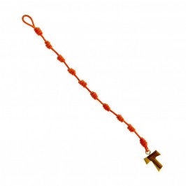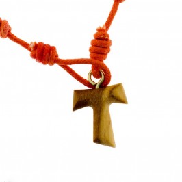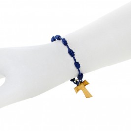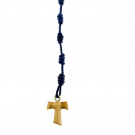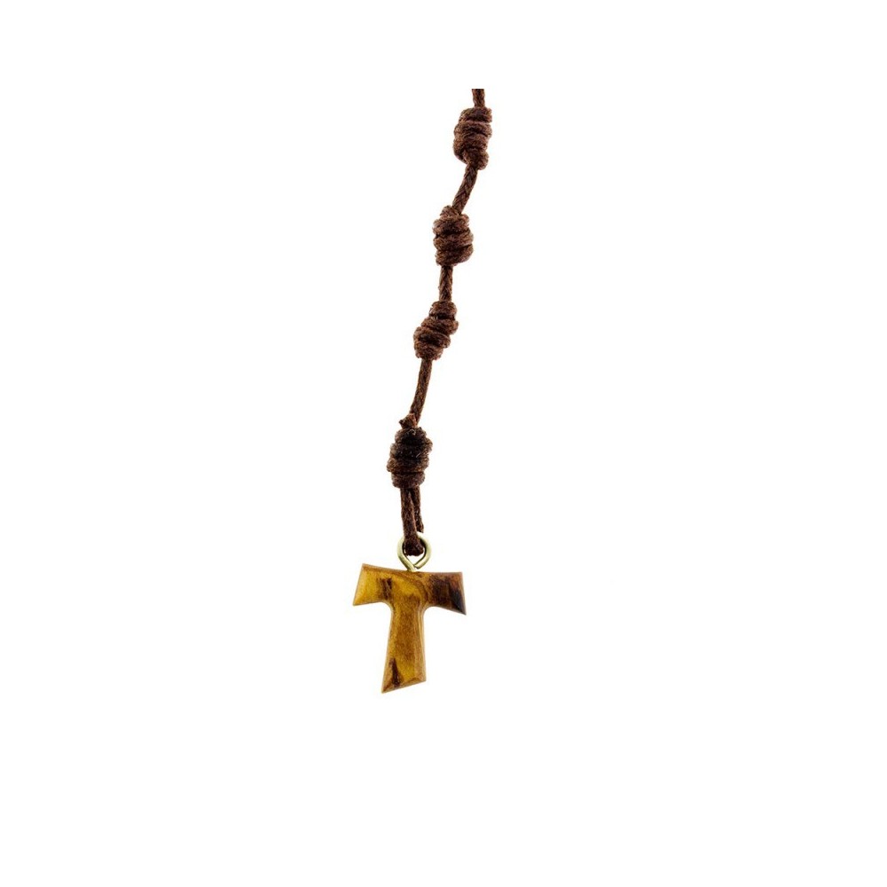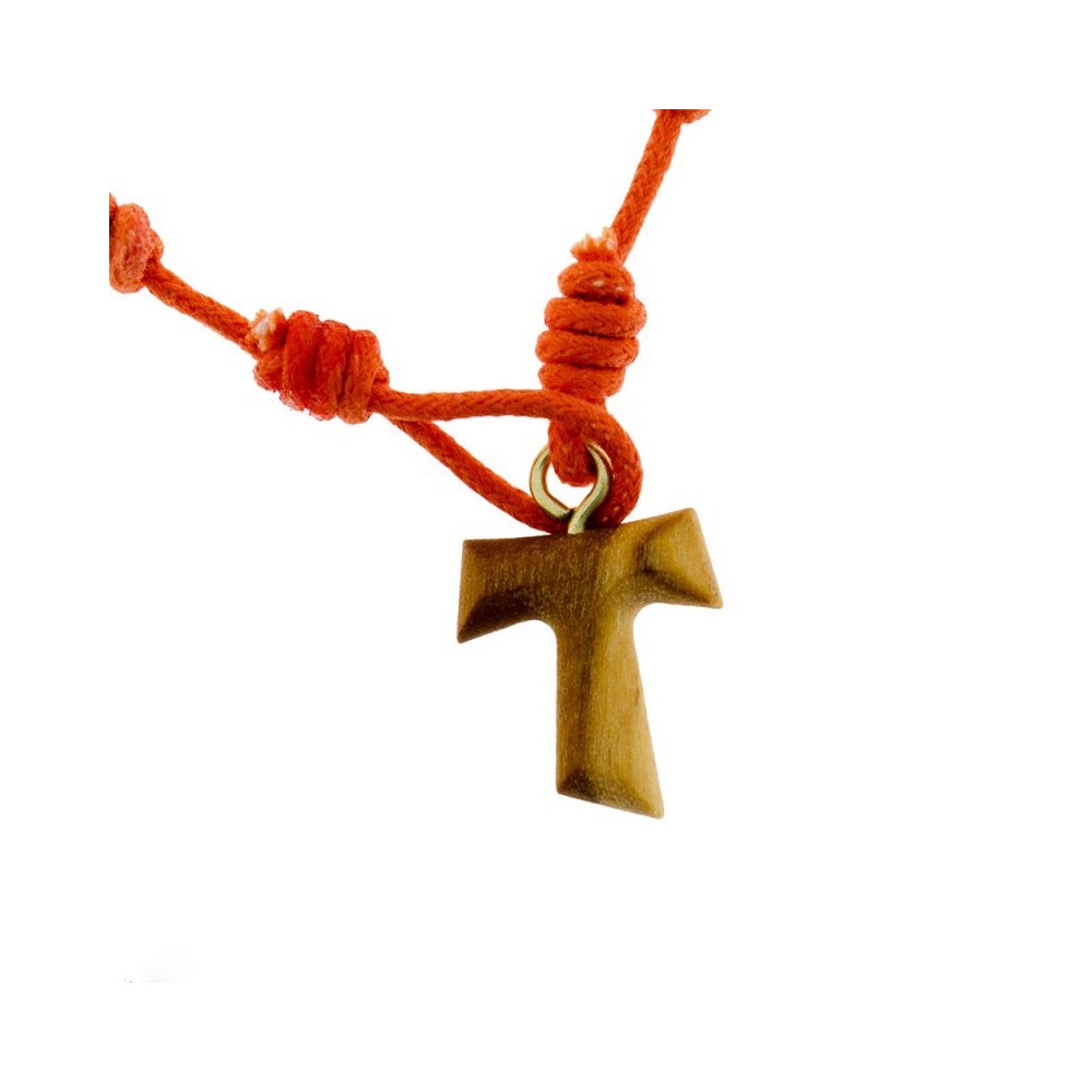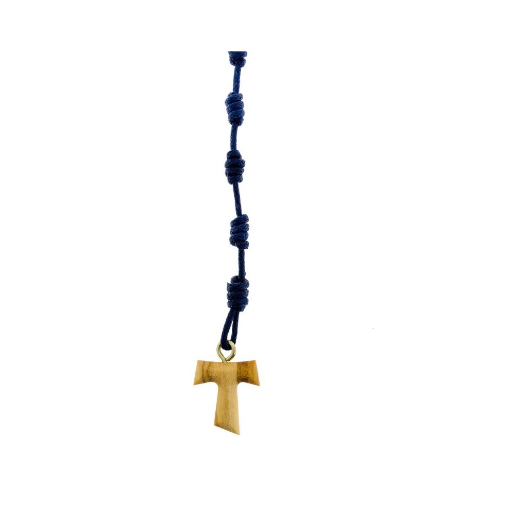 One decade rosary bracelet in rope of assorted colors and Tau Cross in olive wood.
