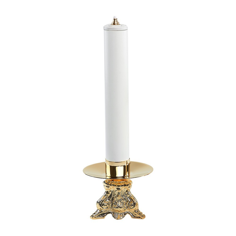 Altar candle holder in silver-plated brass with candle casing of 4.2 cm diameter.