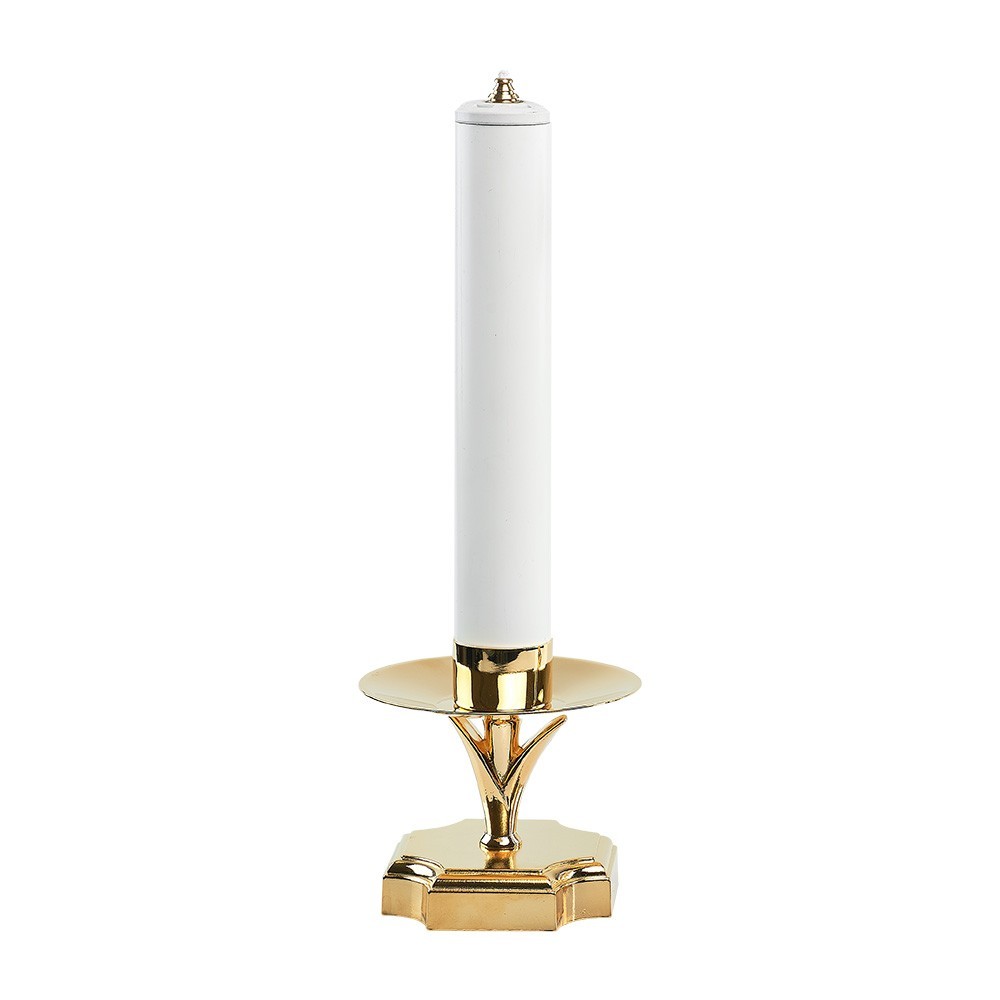 Altar candle holder in silver-plated brass with candle casing of 4.2 cm diameter.