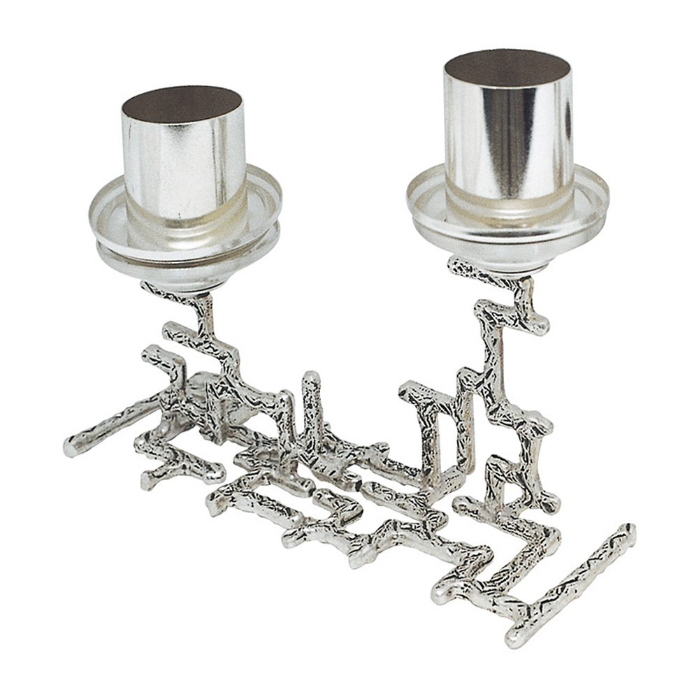 Altar chandelier in modern style. The two supports for candles are pierced, stylized and placed at different heights.