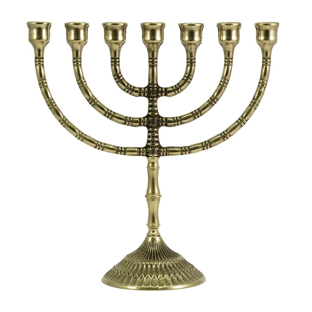 Seven-branch candelabrum in polished brass with 7 flames, h 24.5 cm.