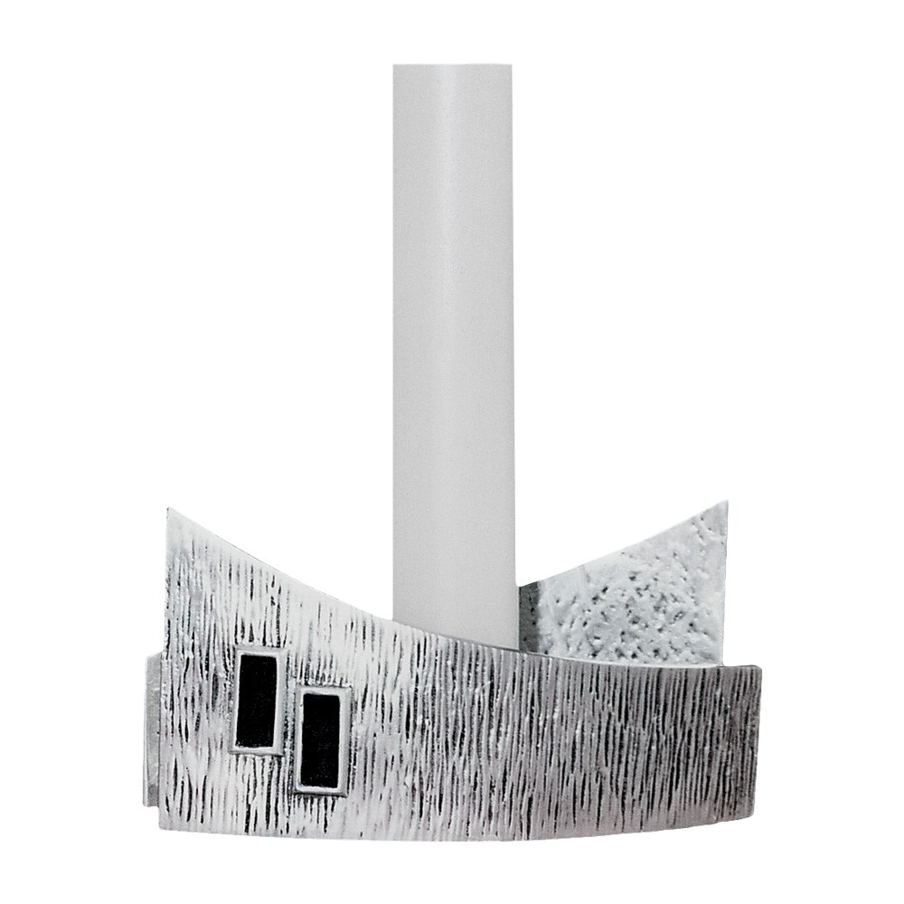 Modern style altar candle holder entirely made of silver-plated brass with enamels.