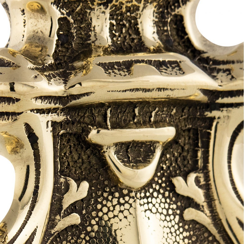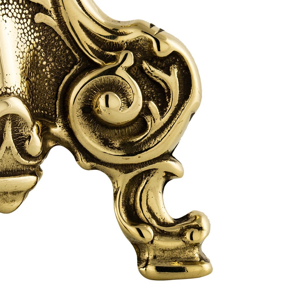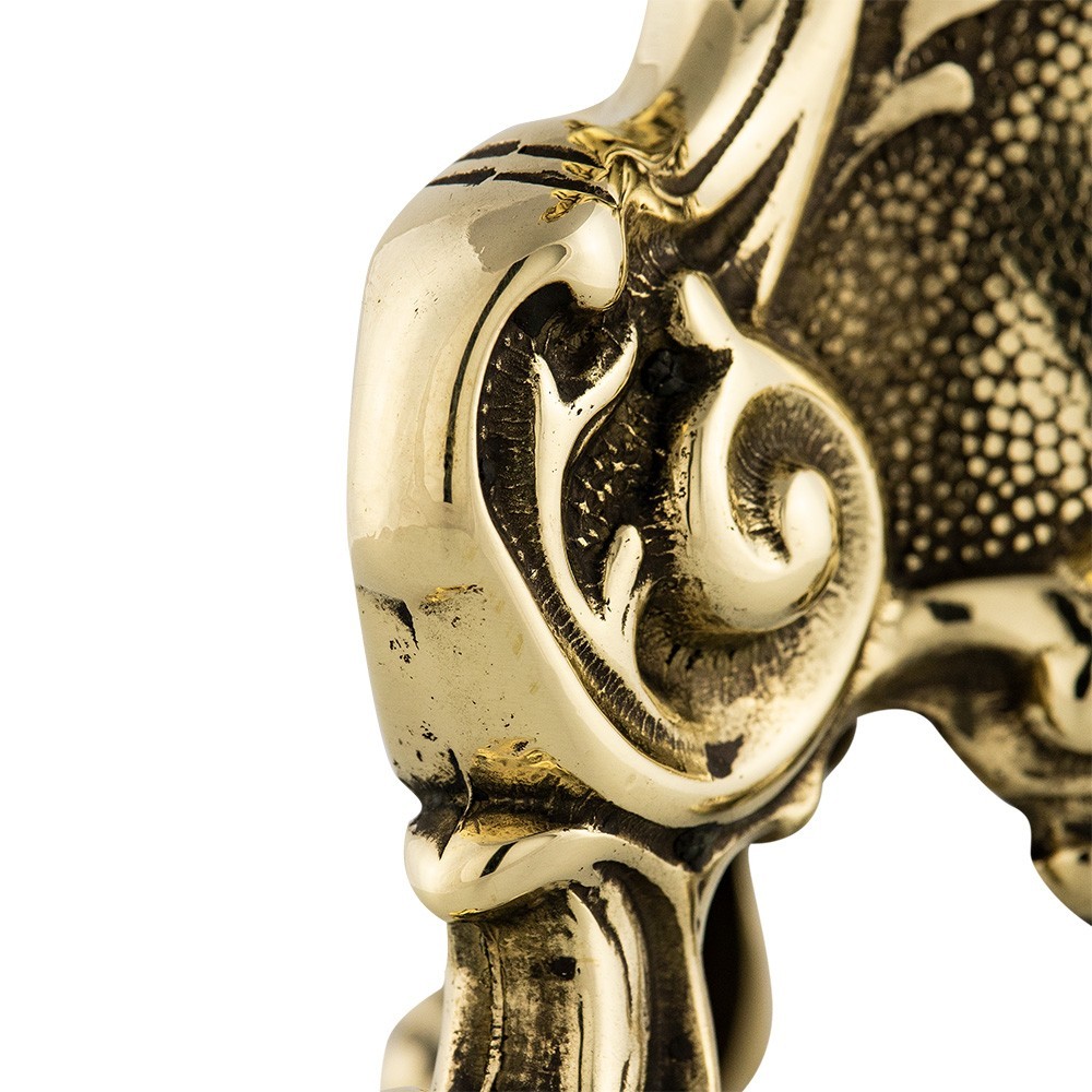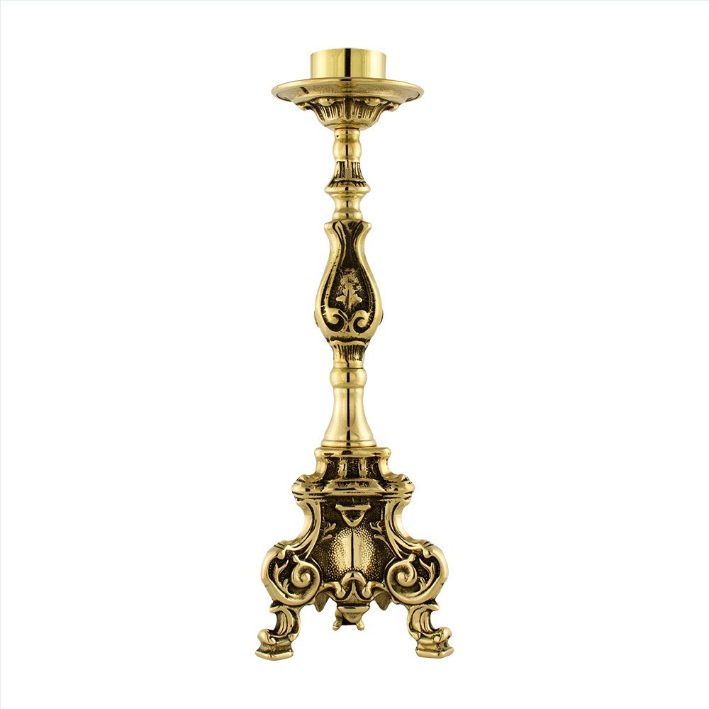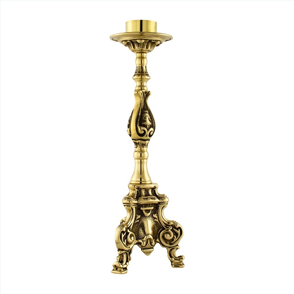 Altar candlestick made of brass with antique finish in “Rococo” style. Provided with a candle casing of 4 cm diameter for wax candle or liquid wax candle. On request, it is possible to install an electrical system.