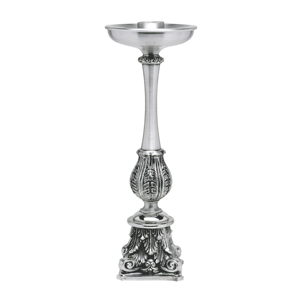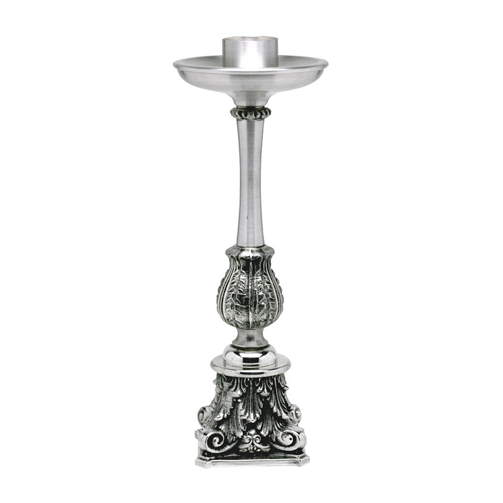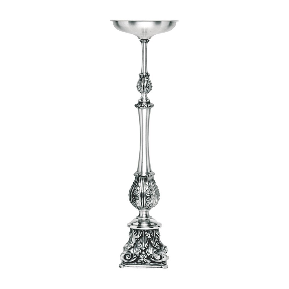 Church candlestick in Baroque style. Made of metal and finely decorated by hand. These altar candlesticks are suitable for fake candles with a maximum diameter of 4 cm. Product of excellent quality made by skilled Italian craftsmen with the greatest care and attention to detail.