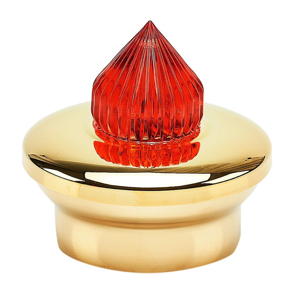Battery-operated light for the Blessed Sacrament. The lamp is made of red plastic and features a flickering light. Its base is made of gold-plated brass. Made in Italy.