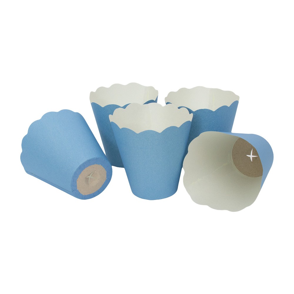 DISPOSABLE candle cups in paper of blue color, ideal for processions. They can contain a candle with a maximum diameter of 2 cm.