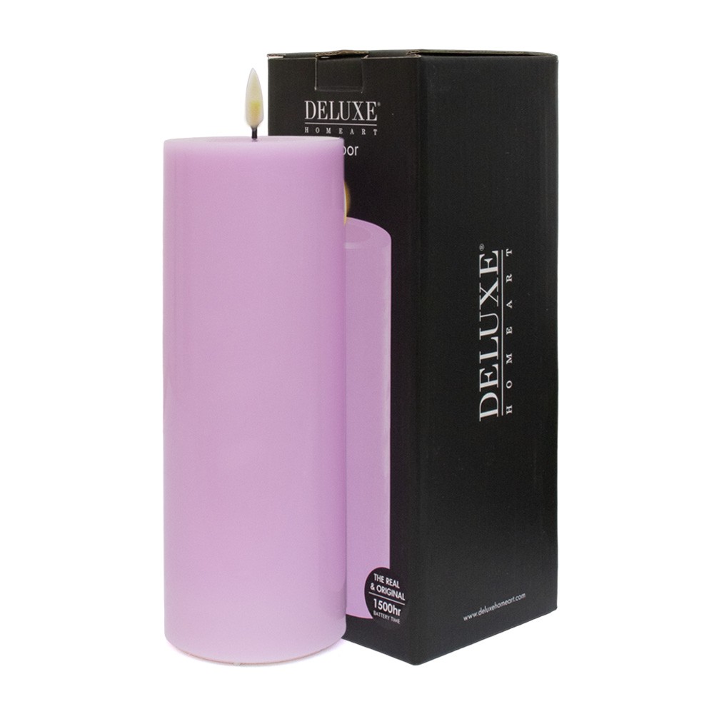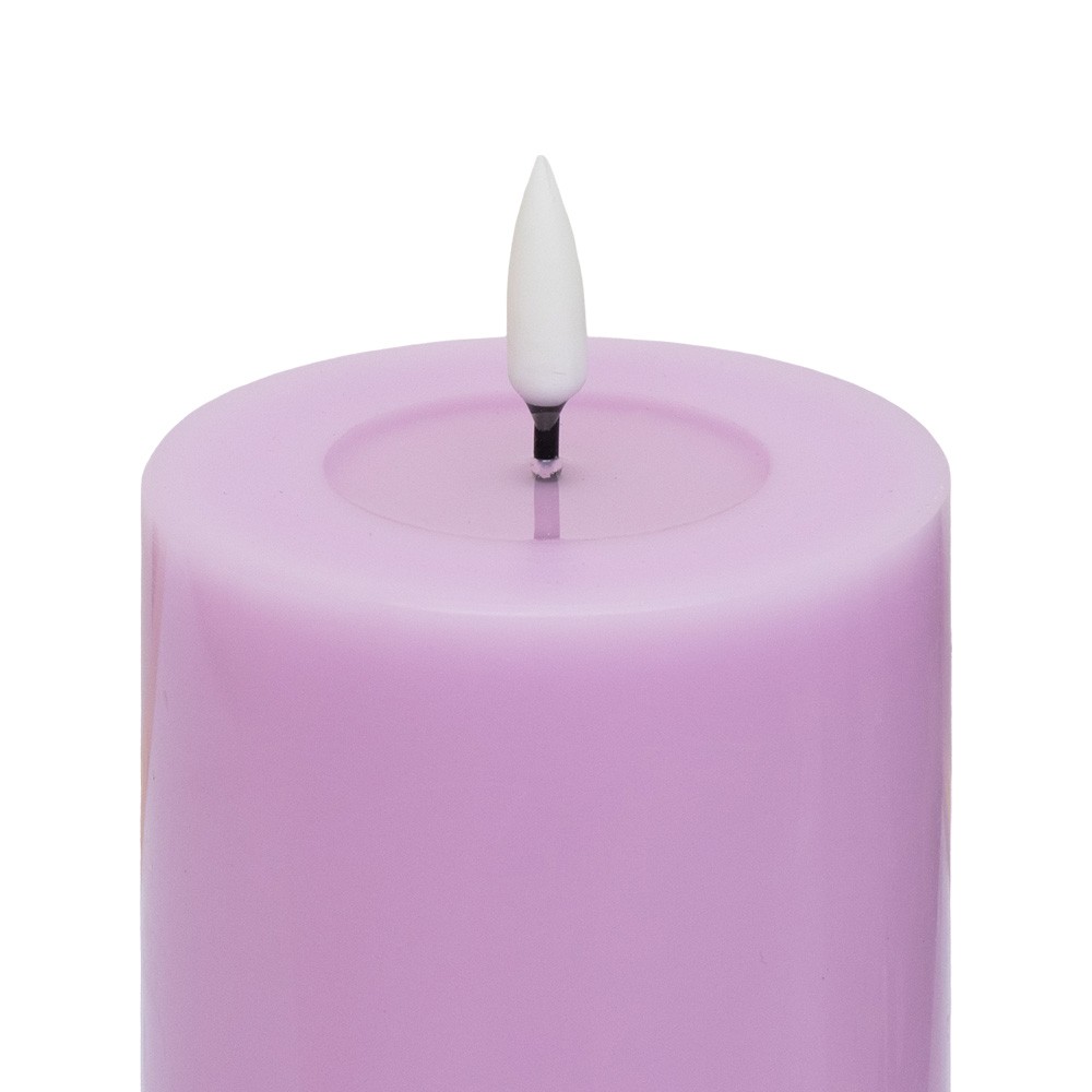 Wax candle of lavender color with wick and LED flame. The upper part is made of resin in order to give a wet appearance.
